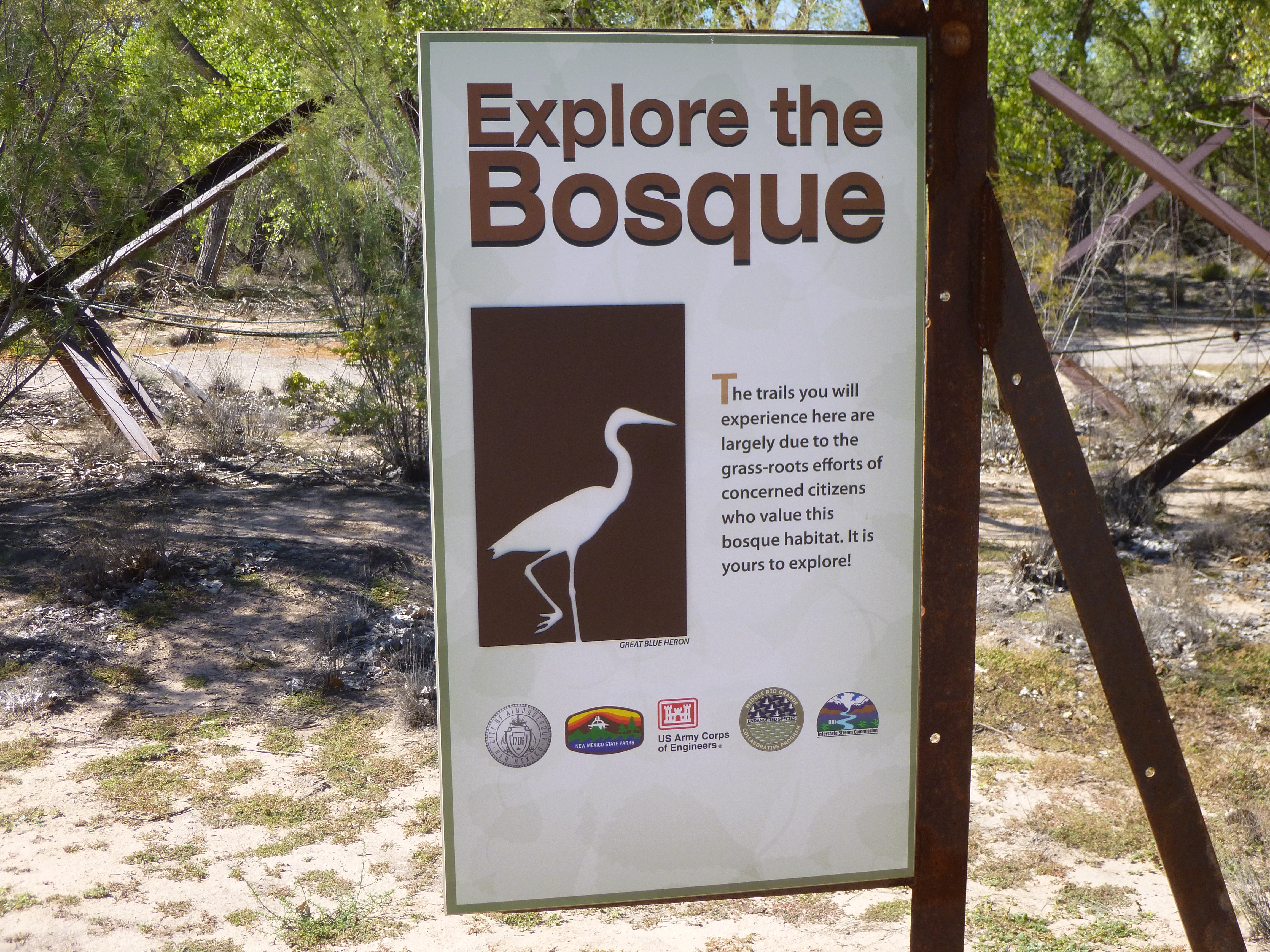 I was going to stay in the Albuquerque area today, and the first place I headed for was the Rio Grande Nature Center State Park. This park bordered the great Rio Grande River, and Tula and I walked for 3 miles. Then she waited in the van while I went out to walk on a couple trails that dogs weren’t allowed on. These trails were in a “bosque” – a word I’d never heard before. A bosque is a Spanish word that means wetlands, and it frequently refers to the wetlands and river forests along the Rio Grande. I covered another 2 1/2 miles on 2 trails in the bosque. Then Tula and I headed to another open space to walk that was literally called The Open Space. A good part of it seemed to follow a dry canal, and we walked another 2 1/2 miles in that area.