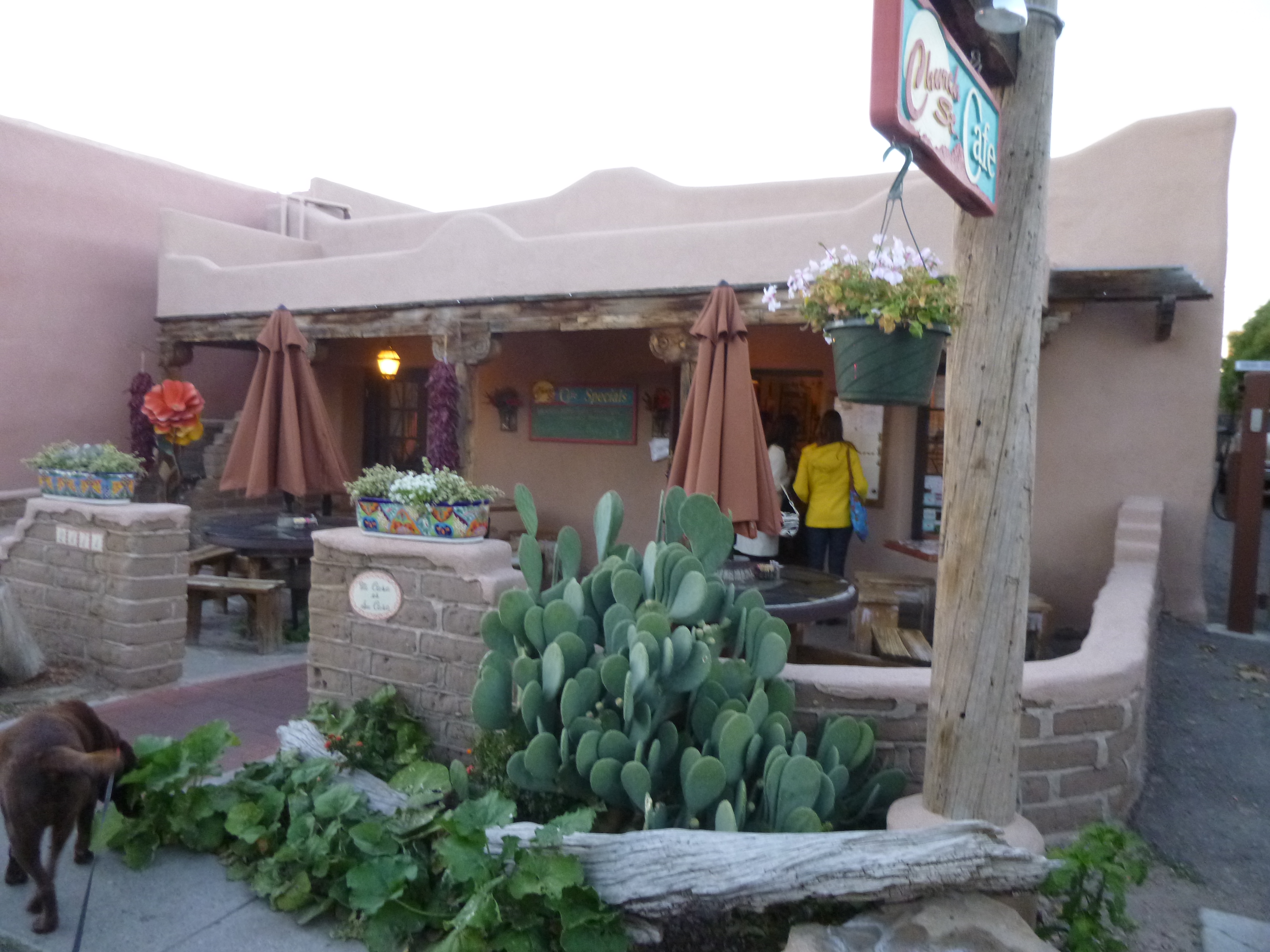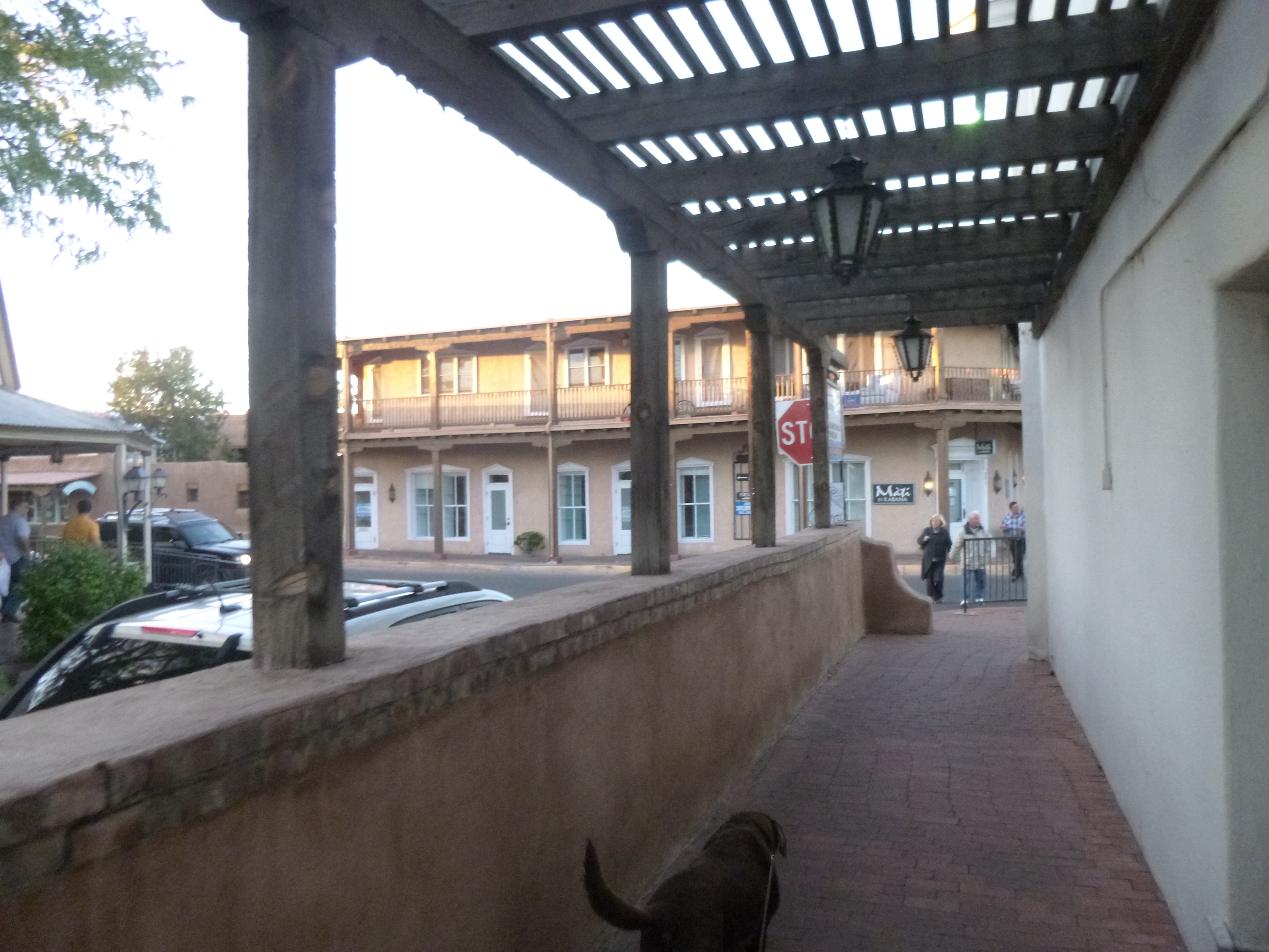 Then I headed for the historic part of downtown Albuquerque. Like Santa Fe, most of the buildings in Old Town were adobe or stucco, and some had lights strung on them, and there were musicians in the central plaza, and it was a fun place to wander around. There was another pretty mission church, complete with attached convent, and they were getting ready for a special blessing event over the weekend. The historic part of Albuquerque didn’t seem to be as big as historic Santa Fe, and we pretty much saw all of it after walking about a mile and a half. That made a total of almost 10 miles for today, and I headed back to the motel. I tried to get packed up as much as I could because I was going to be getting up really early in the morning to head to the opening day of the Hot Air Balloon Festival.