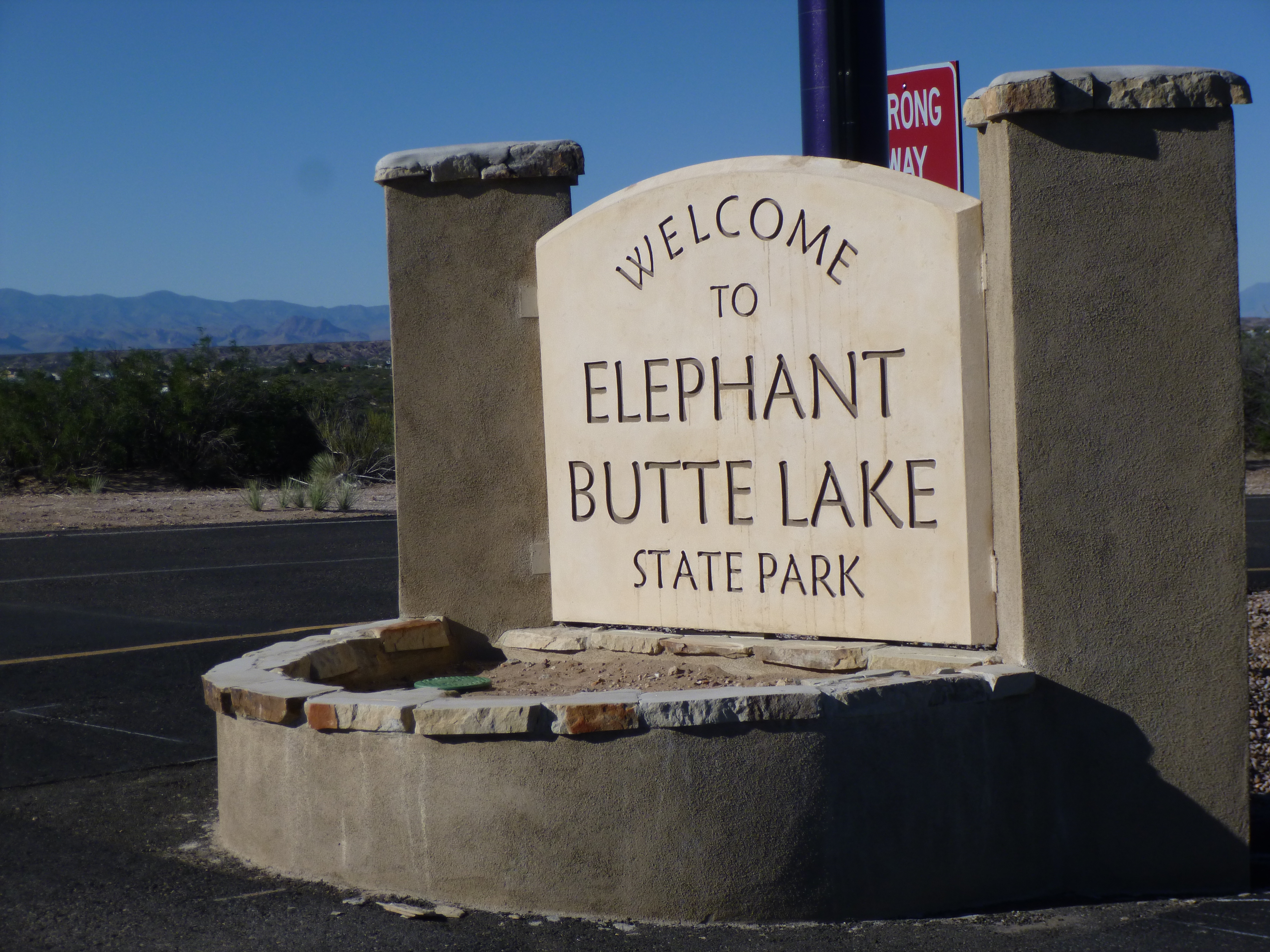 Since I couldn’t visit any national parks; I figured I would head out to see other parts of the state. I was going to aim for the city of Las Cruces, and I made numerous stops along the way. The first was in Socorro and Tula and I took a short walk around the central town plaza and saw another old mission church. I continued on to the town of Elephant Butte, which was on the edge of an unexpected lake in the desert, and there was a marina and lots of people out in boats. The lake looked out of place in brown desert country – I’m used to seeing more of a green shoreline!