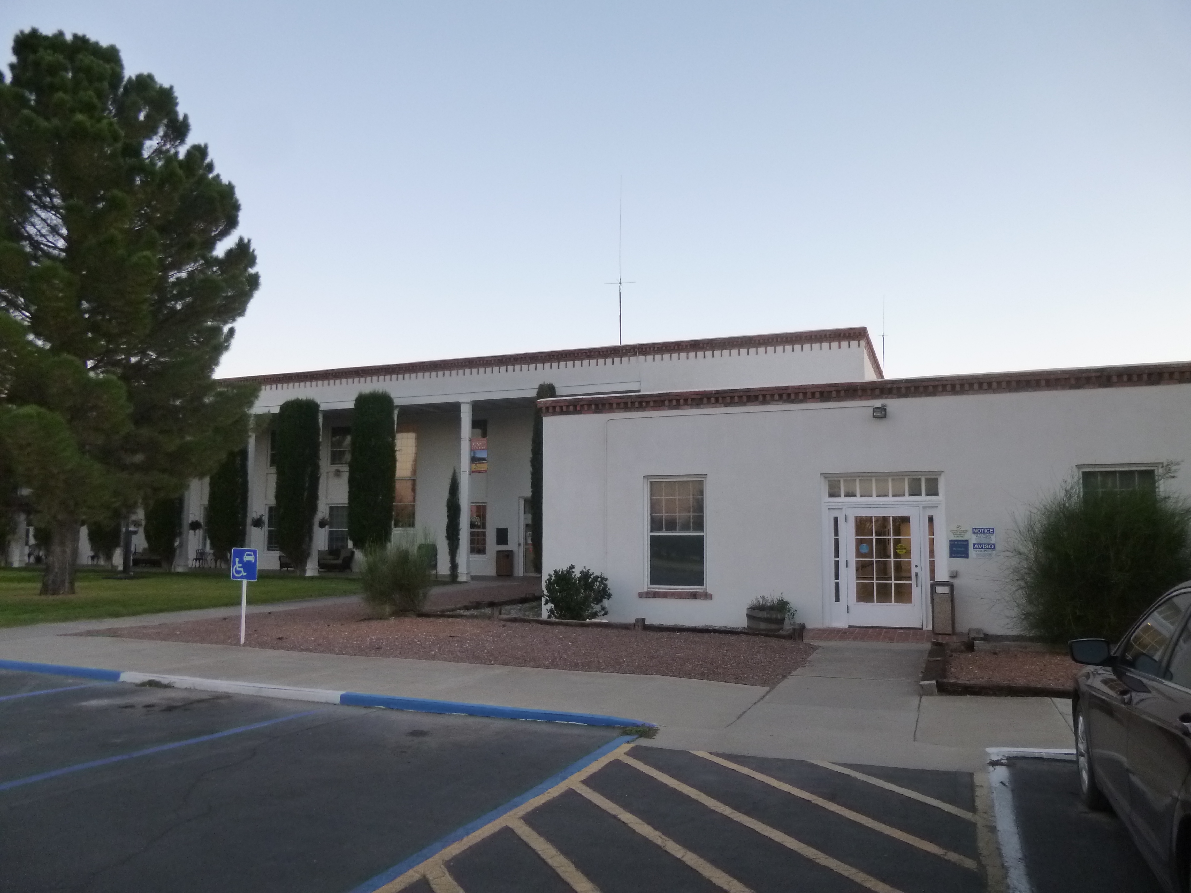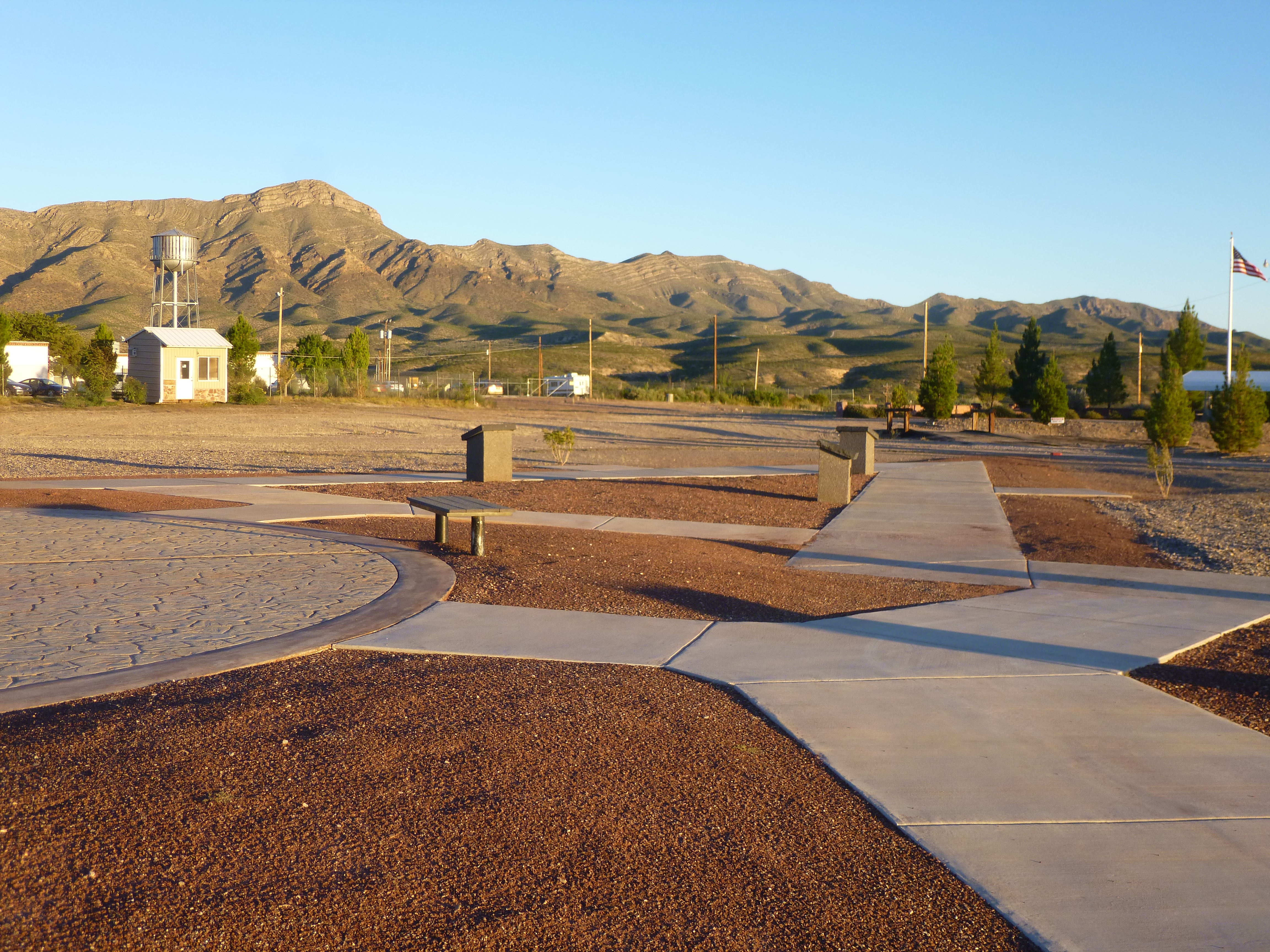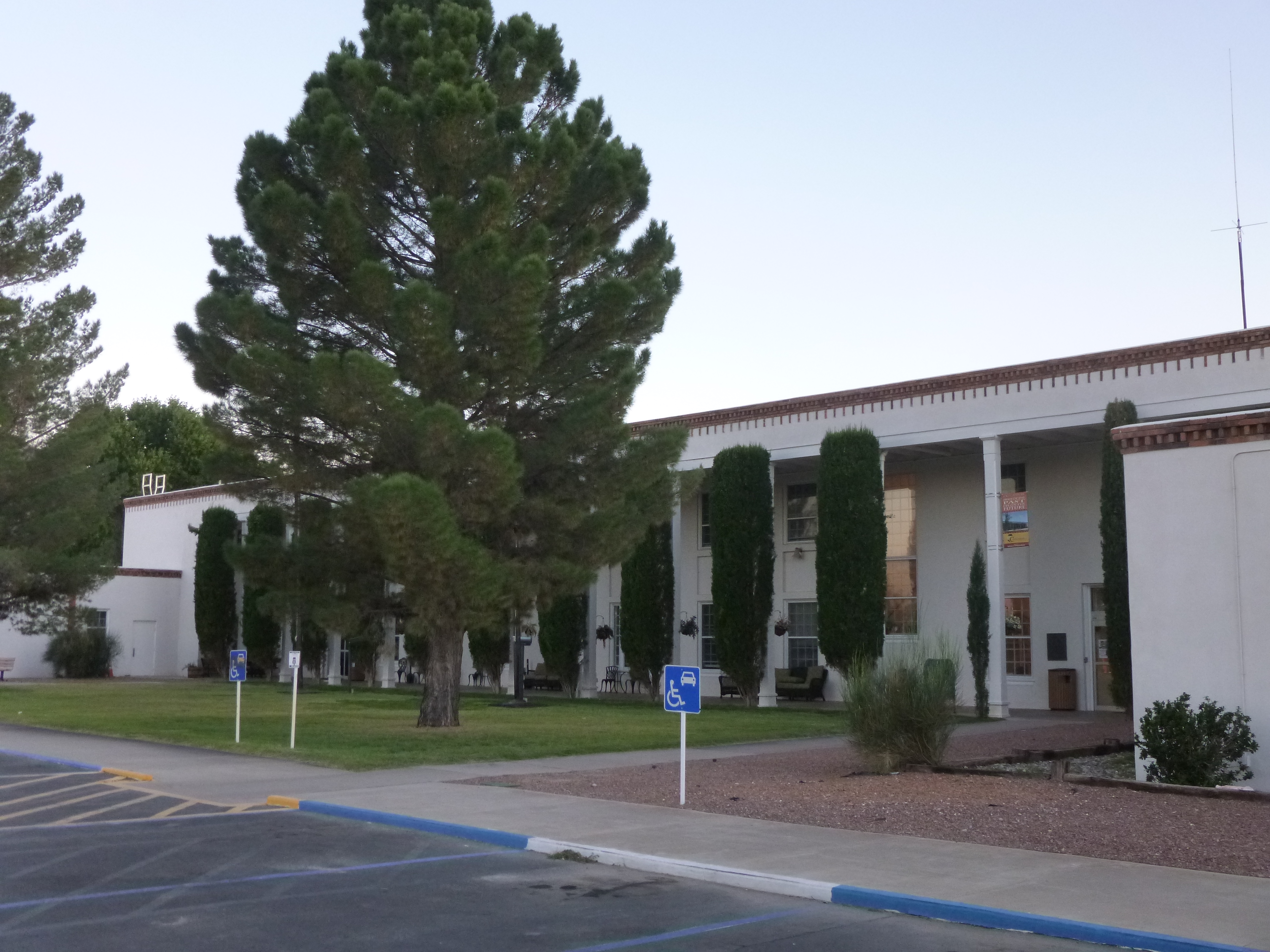 From there we went to the town of Truth and Consequences – which used to be called Hot Springs. In 1950 when the host of the TV game show called Truth or Consequences announced they would air their program from the first town to change its name to Truth or Consequences, Hot Springs won the honor, and the host returned every May for the next 50 years. Tula and I walked a mile and a half all around town, and there were quite a few old hotels from back in the days when they were spa motels and people would visit to soak in the springs to cure all sorts of ailments. From there I found a veterans memorial park that one of my aunts had told me about, and I really enjoyed the stop. There were memorials for all the conflicts the USA has been involved in, and a half-size Vietnam Memorial Wall. There was also a military museum on the grounds, but it was closed since it was evening. When I drove to the memorial, I noticed the Veterans Home right next door, and because I enjoyed the memorial park, it seemed fitting to make a donation to the Veteran’s Home. It was Saturday evening though, and no one answered the phone, and of course the doors were locked. So I just decided to mail in the donation with a note.