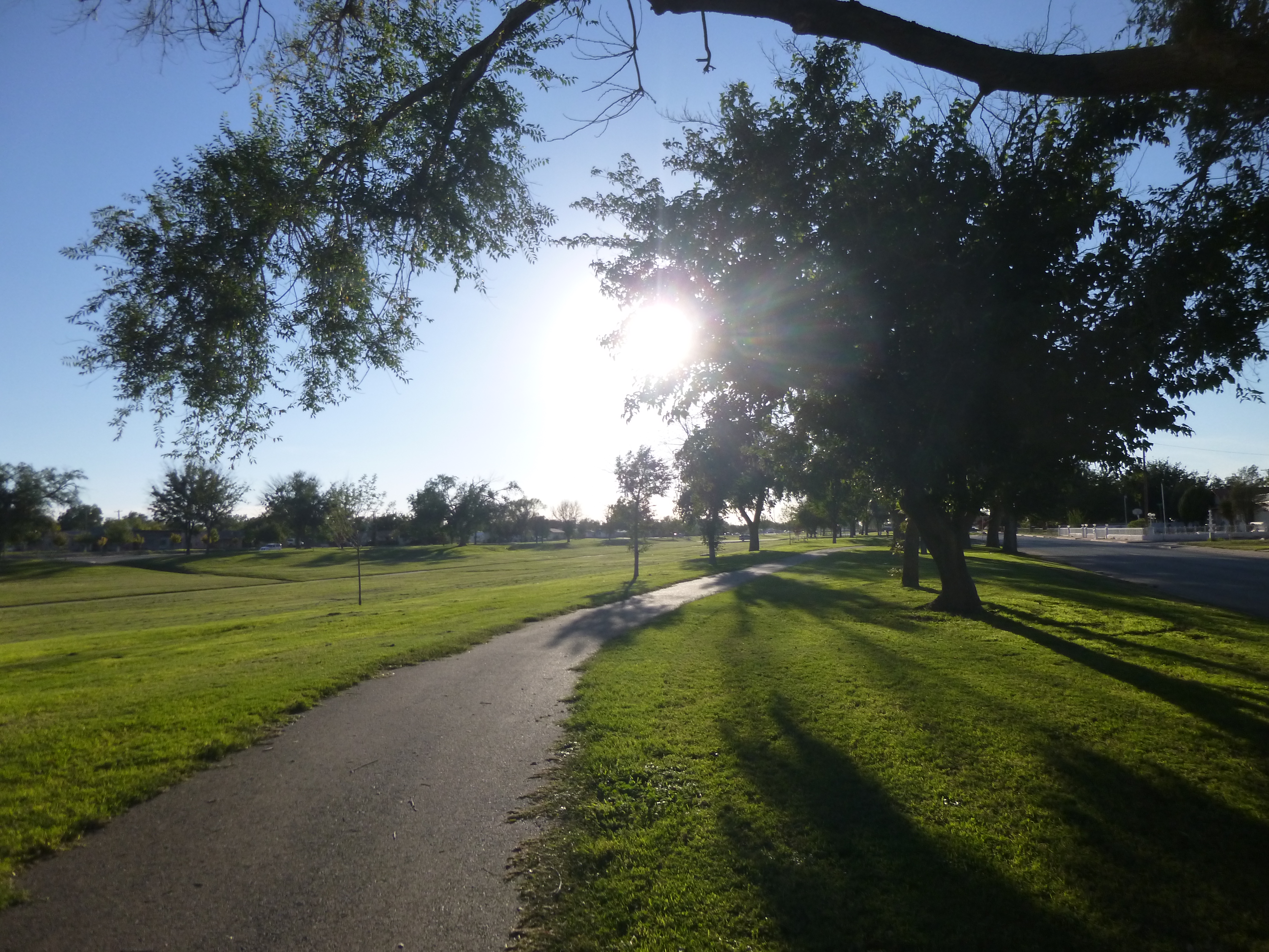 I needed to walk 10.2 miles today to finish off my New Mexico walking, and Tula and I started off our day with a 3 mile walk on the Cielo Grande Rec Area trail. And then on the other side of town, I found the Spring River Rec trail, and covered another 3 1/2 miles. There had apparently been some kind of chalk art contest, and there were some pretty imaginative drawings to look at. The path also went through an industrial area, and there seemed to be a big livestock auction going on – I could hear cattle mooing, and saw lots of big cattle trucks, and could hear an auctioneer’s voice. The trail got a little more scenic, and ended up in a small zoo – I didn’t see many animals in the cages though except for an owl, some kind of steer a few goats and a peacock. Then I walked in downtown Roswell, and so many businesses had alien inflatables, or sculptures or statues that I got a little tired of it – I just don’t really like aliens! Nearly all of the aliens are green (why?) but there were a few pink ones too. Roswell also has an alien museum and research building too – I guess there people out there who are really interested in all the possibilities!