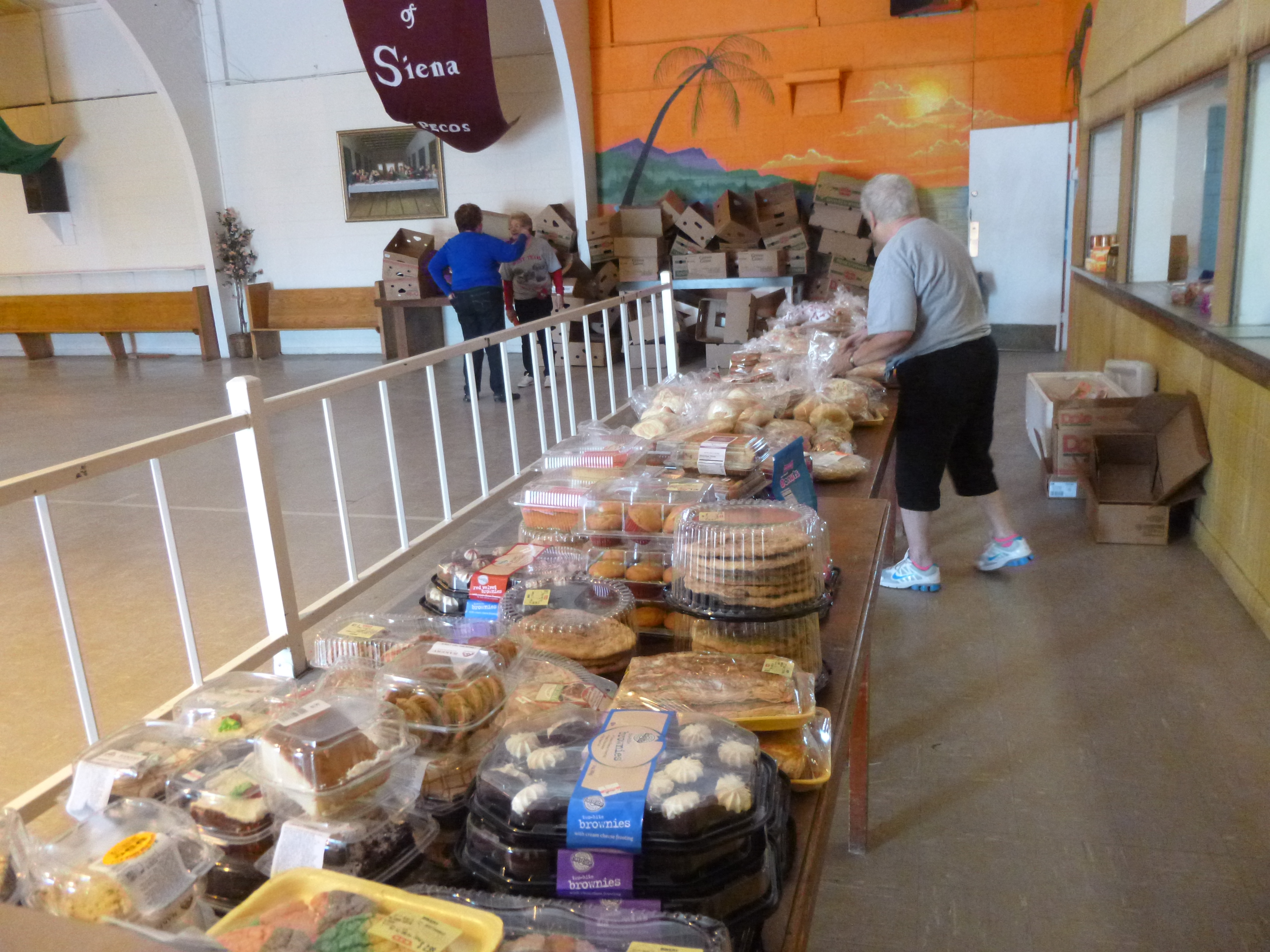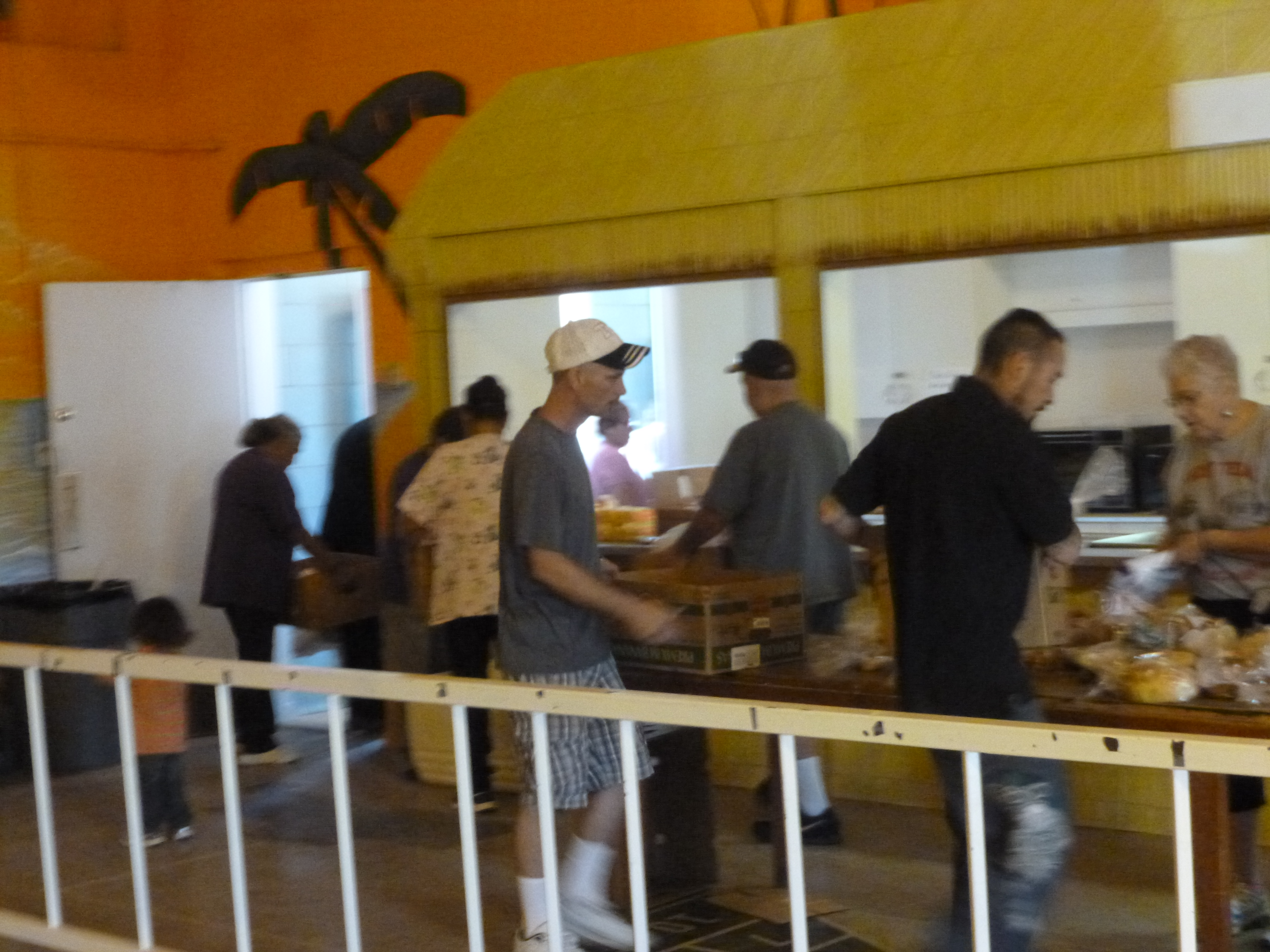 We finished lunch and they got ready to open the doors of the food pantry. People start getting in line about an hour before the doors open, and they asked me to stay to see how things work. They were very organized which is a good thing, because there was a long line of people. When they first come in, they take a big empty cardboard box, and check in at the table, or register if they’re a new client. From there they go get non-perishable food depending on the size of their family; then they go through the baked good and bread line; and then into the kitchen to get frozen things like chicken and hamburger and then they get whatever produce is available. They have an efficient system and were able to help a lot of people in a relatively short period of time. They told me it’s always really busy when the doors first open, and then people continue to trickle in and out for the rest of the hours they’re open. My visit was a wonderful welcome to the big state of Texas and I enjoyed talking with Sena, Mae, Lois, Nora, Betty, Yvonne, Elisa and a couple others. When I was leaving, Sena, the elegant oldest volunteer, pushed some bills into my hand to counteract the ridiculously high price of the Motel 6 last night. I tried to return it, but she insisted that I keep it and told me I was doing a good thing. Thank you, Sena.