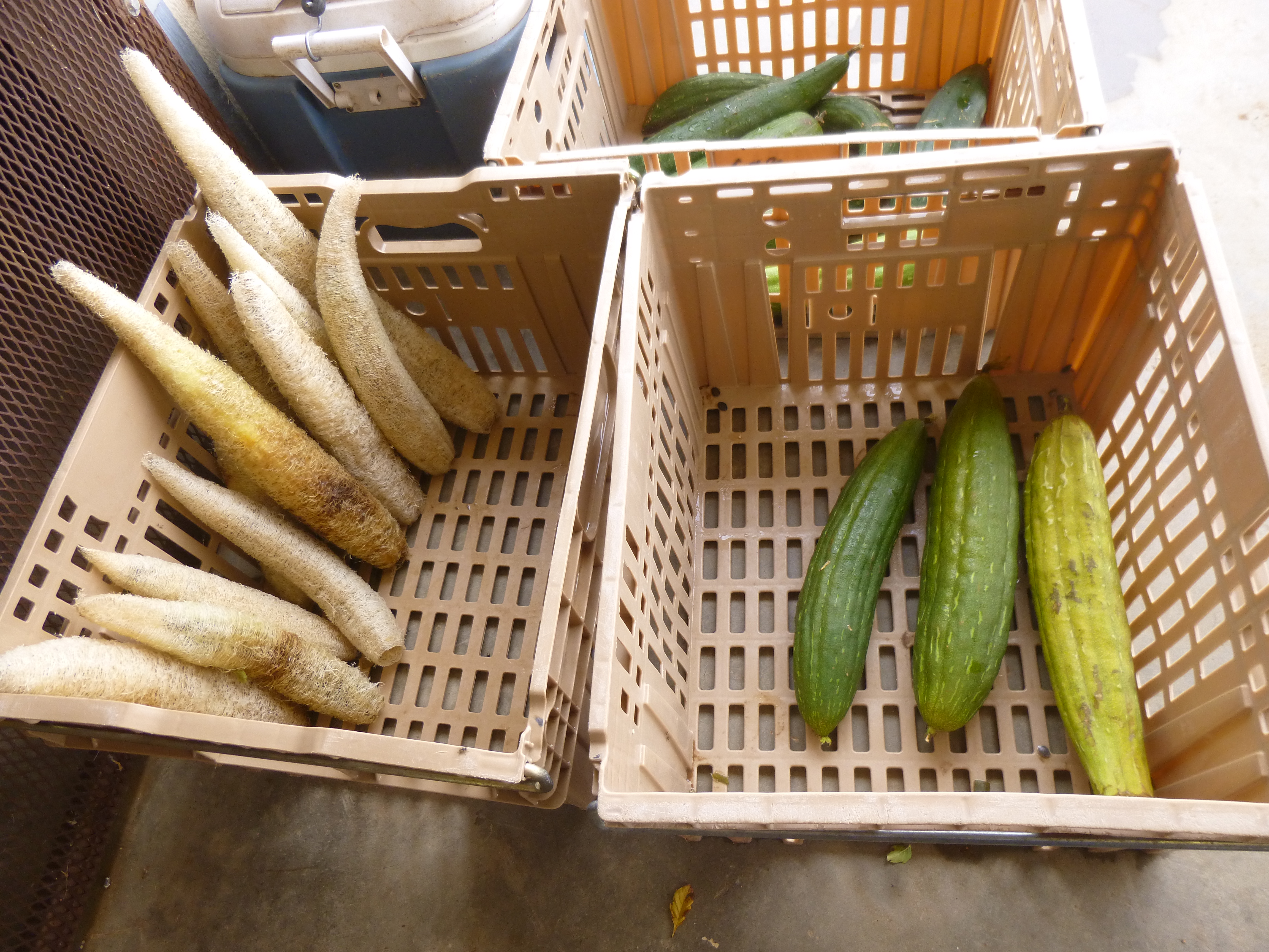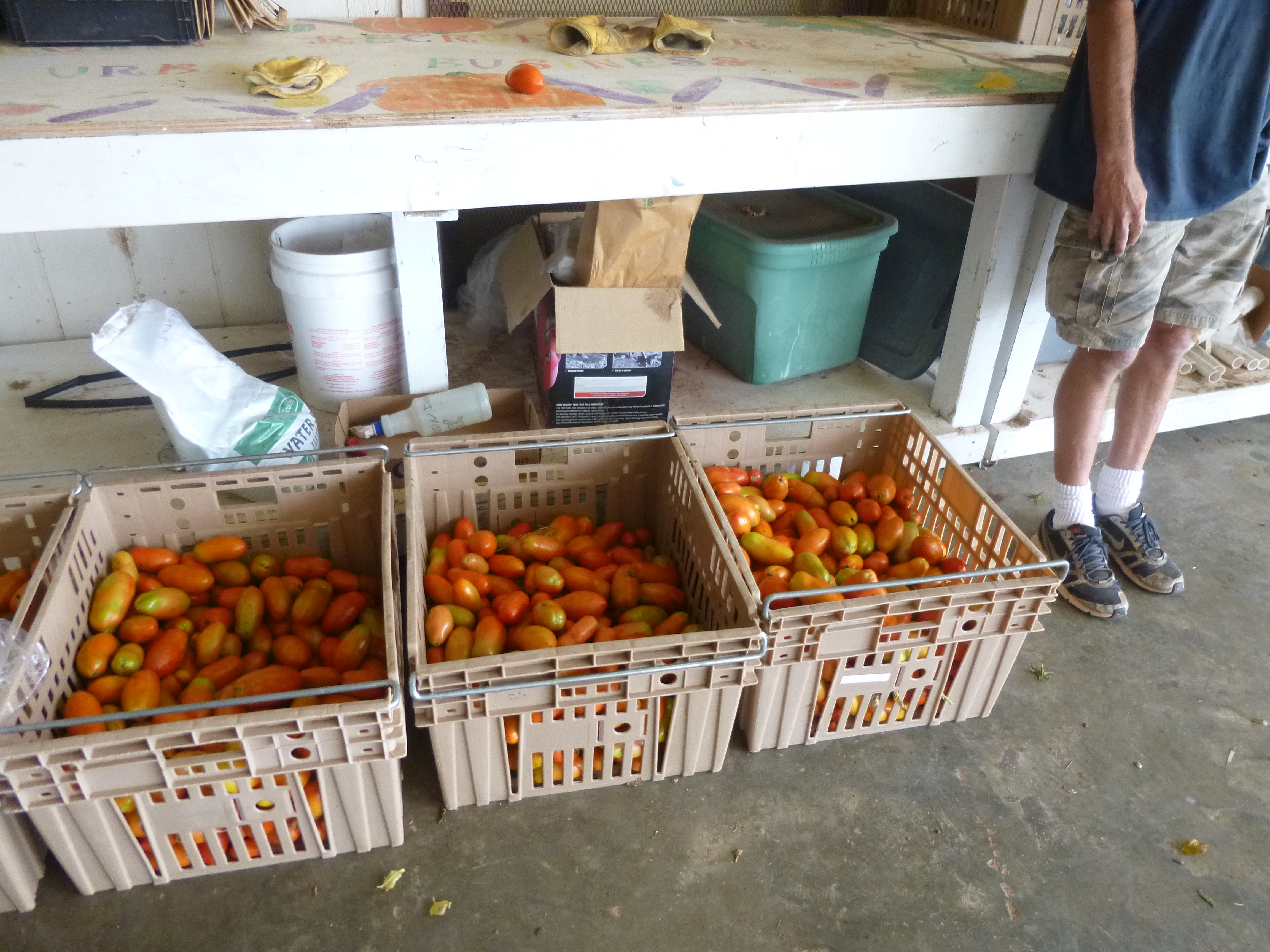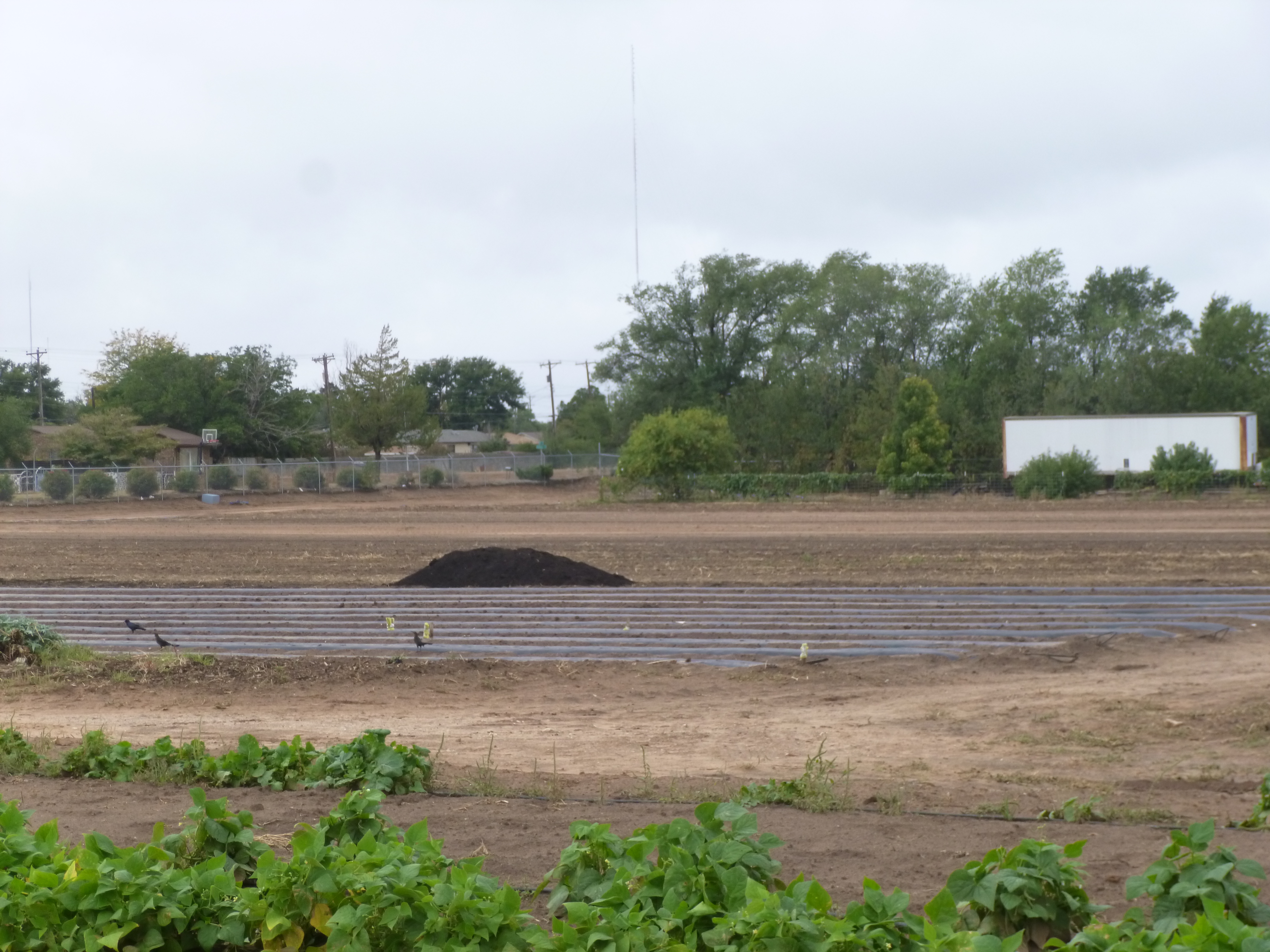 My first stop today was going to be at the South Plains Food Bank, where I was going to meet Maxine, who’s the director of GRUB (Growing Recruits for Urban Business). GRUB operates a large 5-acre garden, and is designed to help young people between the ages of 14-21 learn about both farming and business. I met Maxine after her staff meeting, and she was a wonderfully kind lady. I had called her a couple times to make arrangements to stop by when I was in Lubbock (and it took longer to get there than I thought!) and she had even offered to take me out to the garden during the weekend if that’s when I came through. Despite all the rain over the weekend, she was still willing to take me out to the garden so I could see what they’re doing. The kids learn about all aspects of gardening like planning, soil prep, irrigation, planting, nurturing and harvesting. They gain marketing and business skills by going to the farmer’s market. During the school year the kids come out on Saturdays to work in the gardens, and during the summer, 25-30 of them are actually hired to work in the garden. Sometimes when the kids are not working in the garden, local prisoners come out to work. In addition to traditional gardens, there are some raised bed gardens so people in wheelchairs can work in them, and there are also some greenhouse-type buildings called “high tunnels.” One of the high tunnels was full of 5 different varieties of strawberries. Lots of the produce had already been harvested (several crates of roma tomatoes were in the building) but there was still work to do. It was really interesting to see everything, and I was happy to support them. The thing that surprised me the most is that they grow loofas for use in soap making. I had no idea loofas were grown on land – I thought they came from the sea! They had a big trellis for the loofas to grow on, and they hang from their vines. They sort of look like zucchinis. Once they’re picked, the loofas are soaked and then peeled. They have a lot of little seeds in them, and those are removed with a great deal of shaking. The loofas are then soaked in bleach and dried, then they’re ready to be used in making the soap bars. One of the ladies was in the process of making soap bars to be sold at a local market to raise money for the food pantry – she would put a dry loofa in a tall container, and then pour melted soap with added fragrance and the soap fills up all the hollow spaces in the loofa, and when it hardens they have a machine to cut it in thick slices, which are sold as a soap/scrub bar. I’ve bought those at craft shows in the past. She gave me an almond-scented bar, and Maxine also gave me a bag of small yellow pear-shaped tomatoes which were yummy!