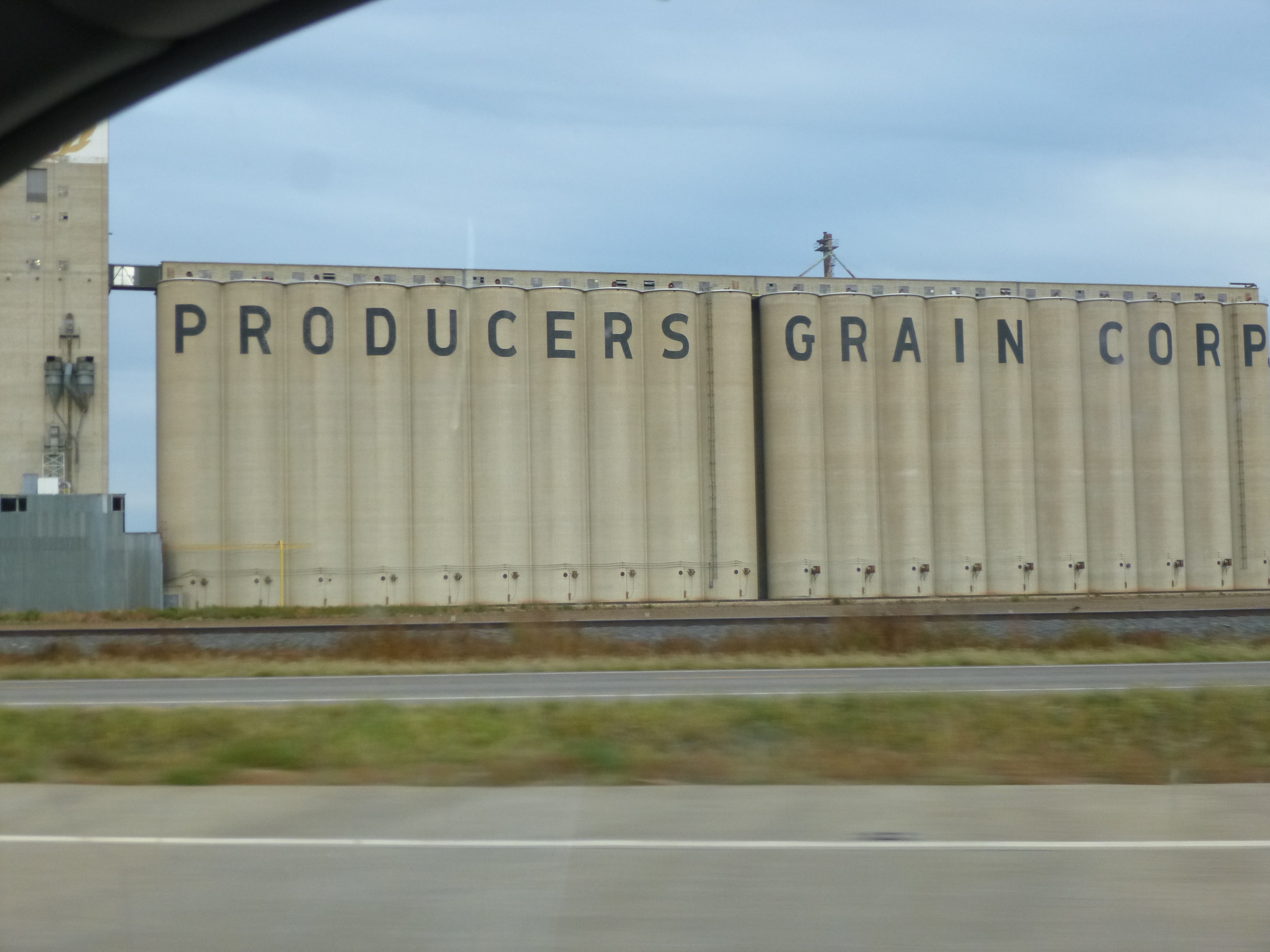This area was still cattle country, and they grow a lot of grain, and it’s also one of the biggest cotton producing regions in the country. I drove through all the wide open spaces, and passed some big grain elevators. I passed a town called Tulia, and drove through it, but it was getting dark and I didn’t see any place to finish my last mile of walking, so I’ll have to do that in the morning. I continued driving along through a fiery red sunset to the town of Amarillo, where I stopped for the night.