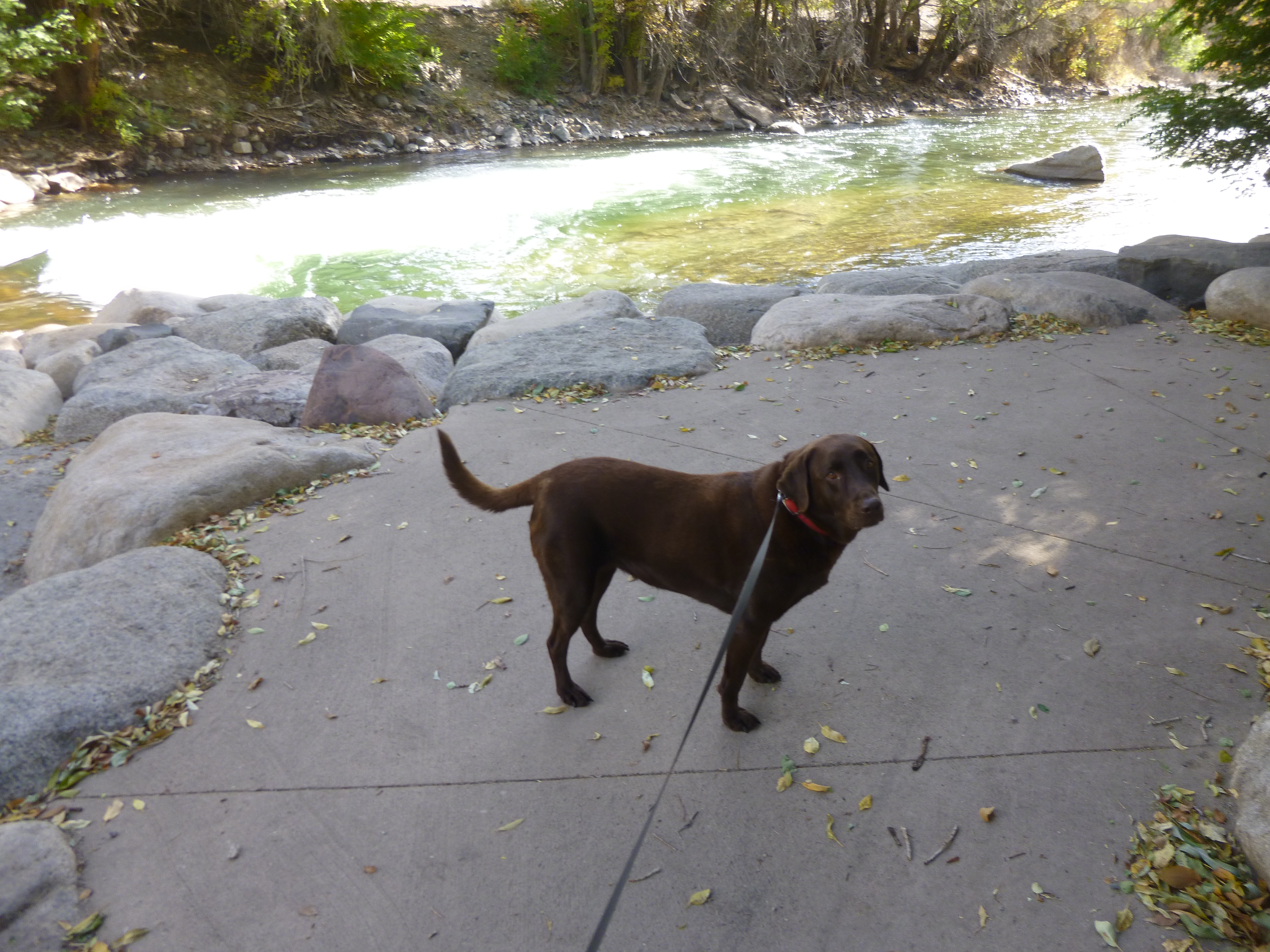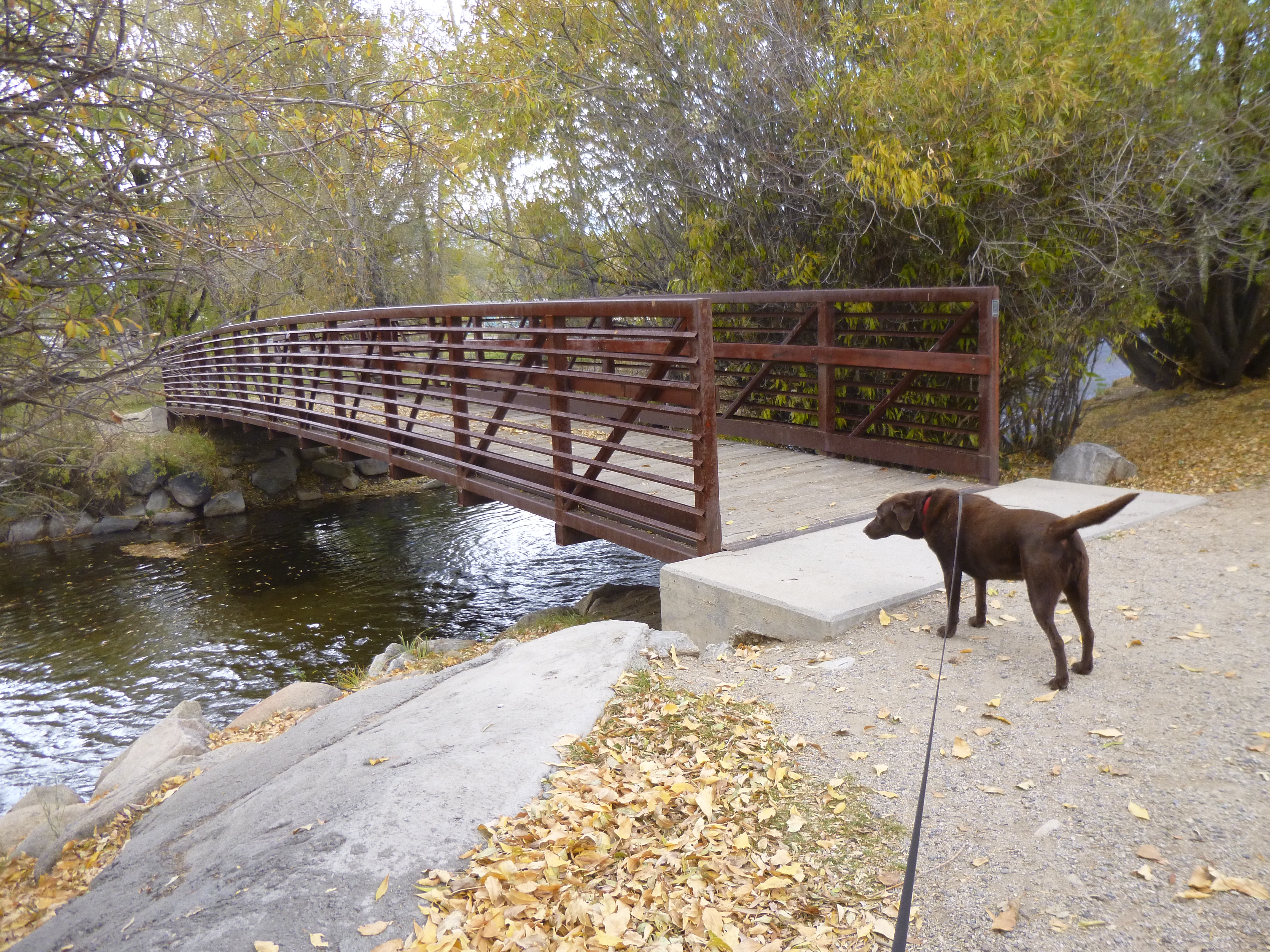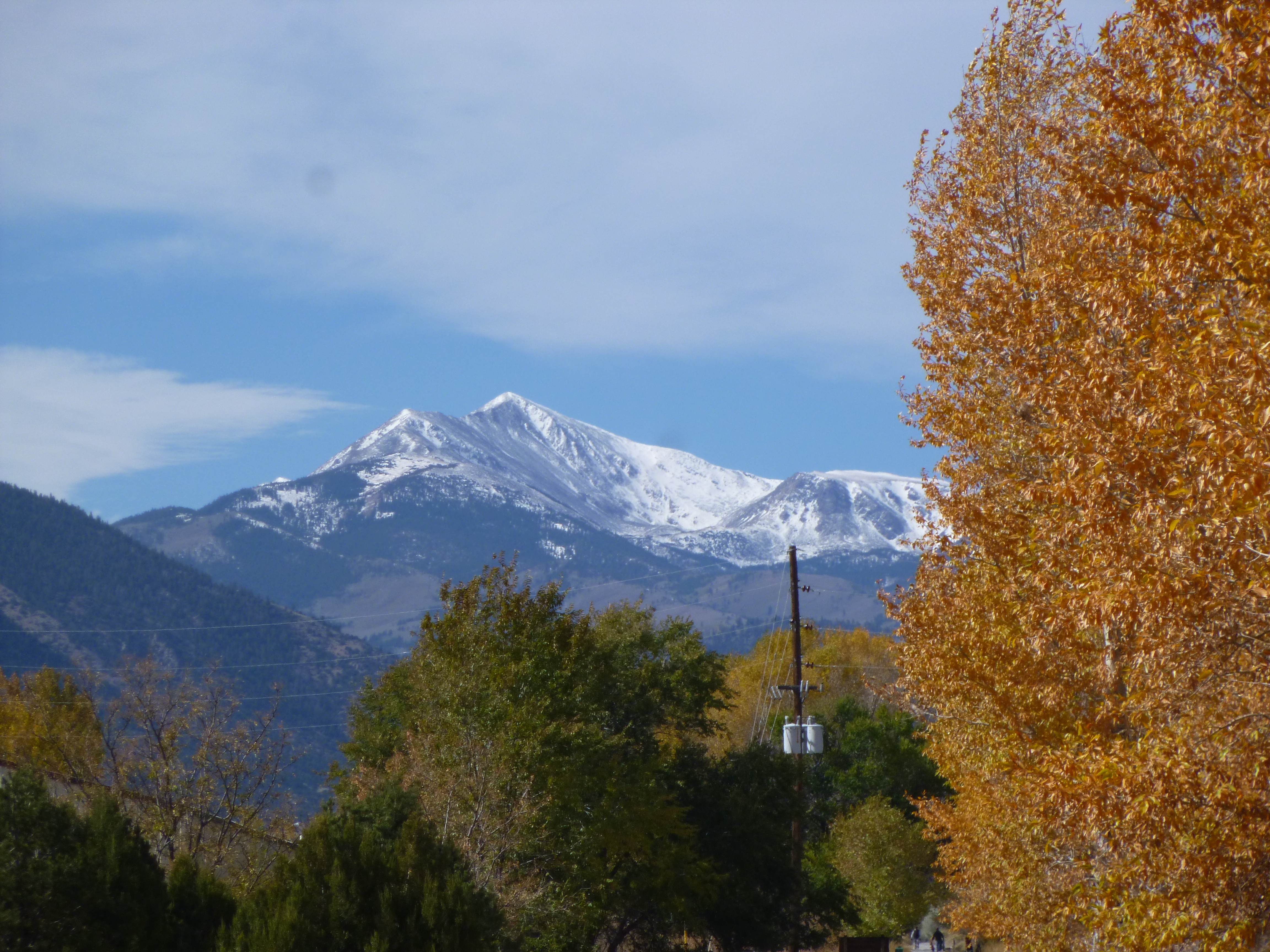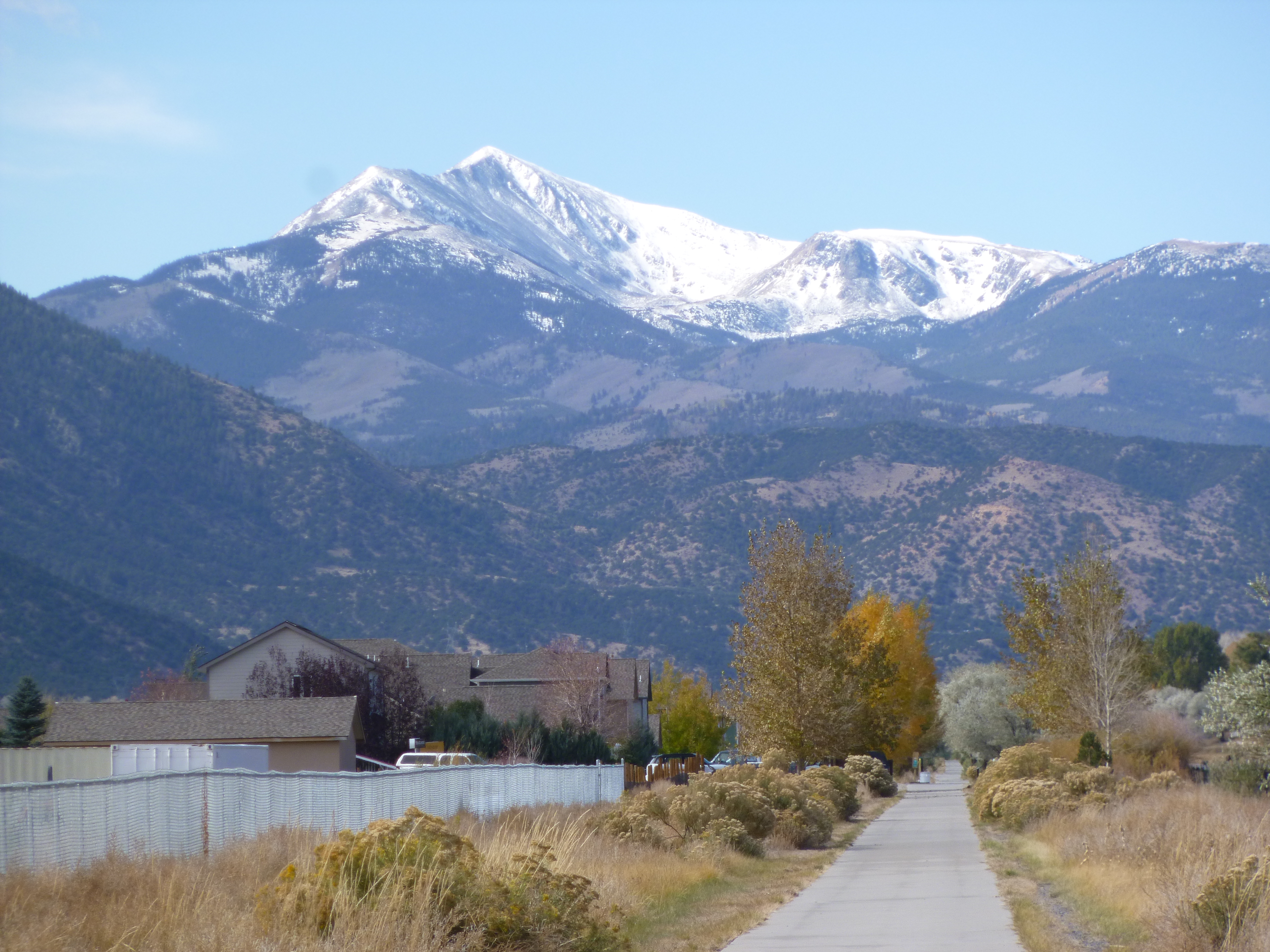 I had driven down to the town of Salida last night – one of the many old gold or silver mining towns in the Colorado mountains. When gold was discovered, it would trigger another gold rush and thousands of prospectors would make their way out to stake another claim. One rich valley had as many as 5,000 men working in a 1/2 mile area – I presume it was a pretty deep gulch to accommodate all the people. I can’t imagine the chaos! Tula and I started our walking in Salida, which had a big historic district and a pretty riverfront. They sometimes have canoe or kayak races down the river and some of the gates were still hanging up. Then I found a rail trail and we covered a couple more miles walking right toward the snow-capped mountains. I walked over 3 1/2 miles altogether in Salida.