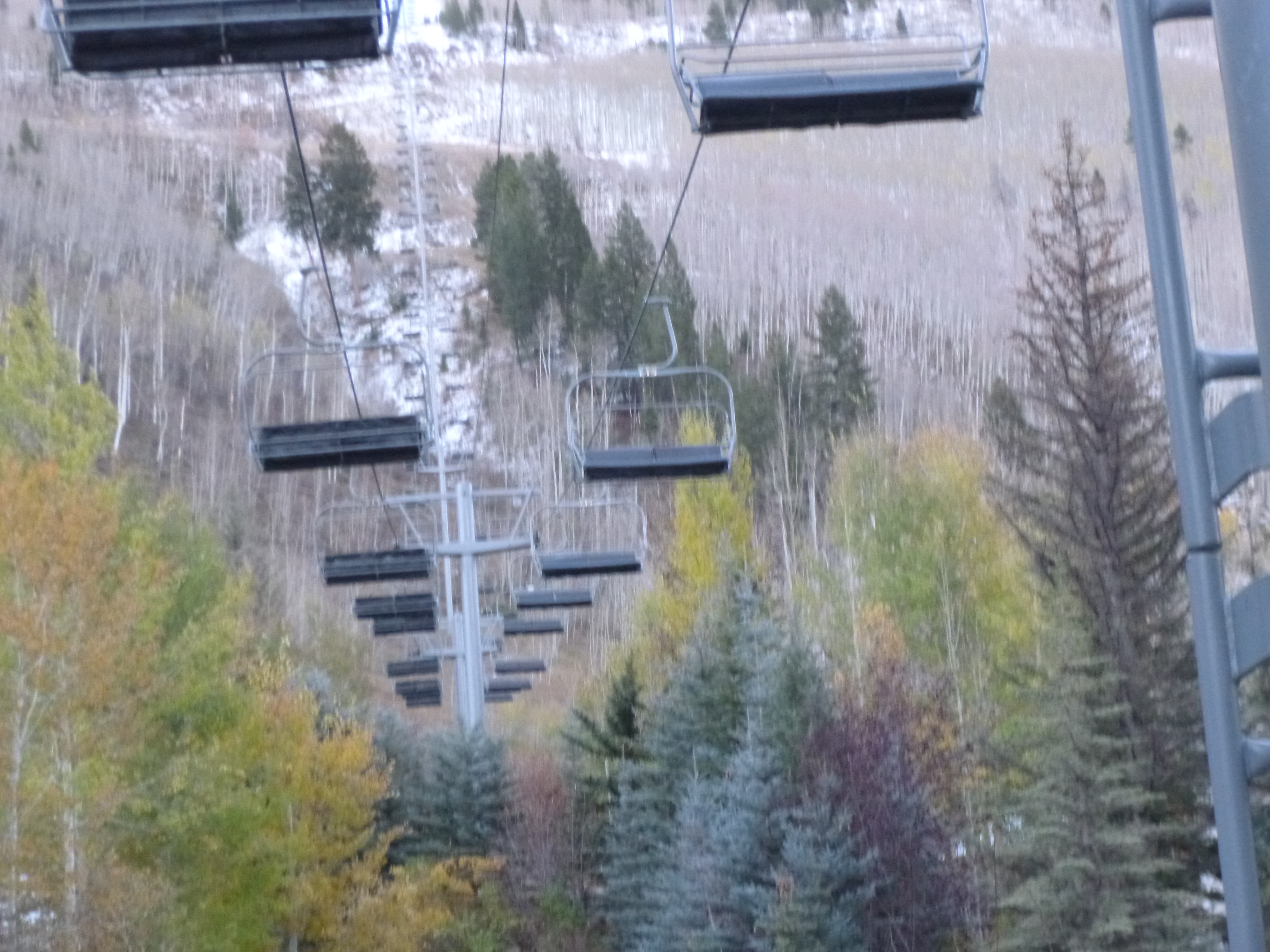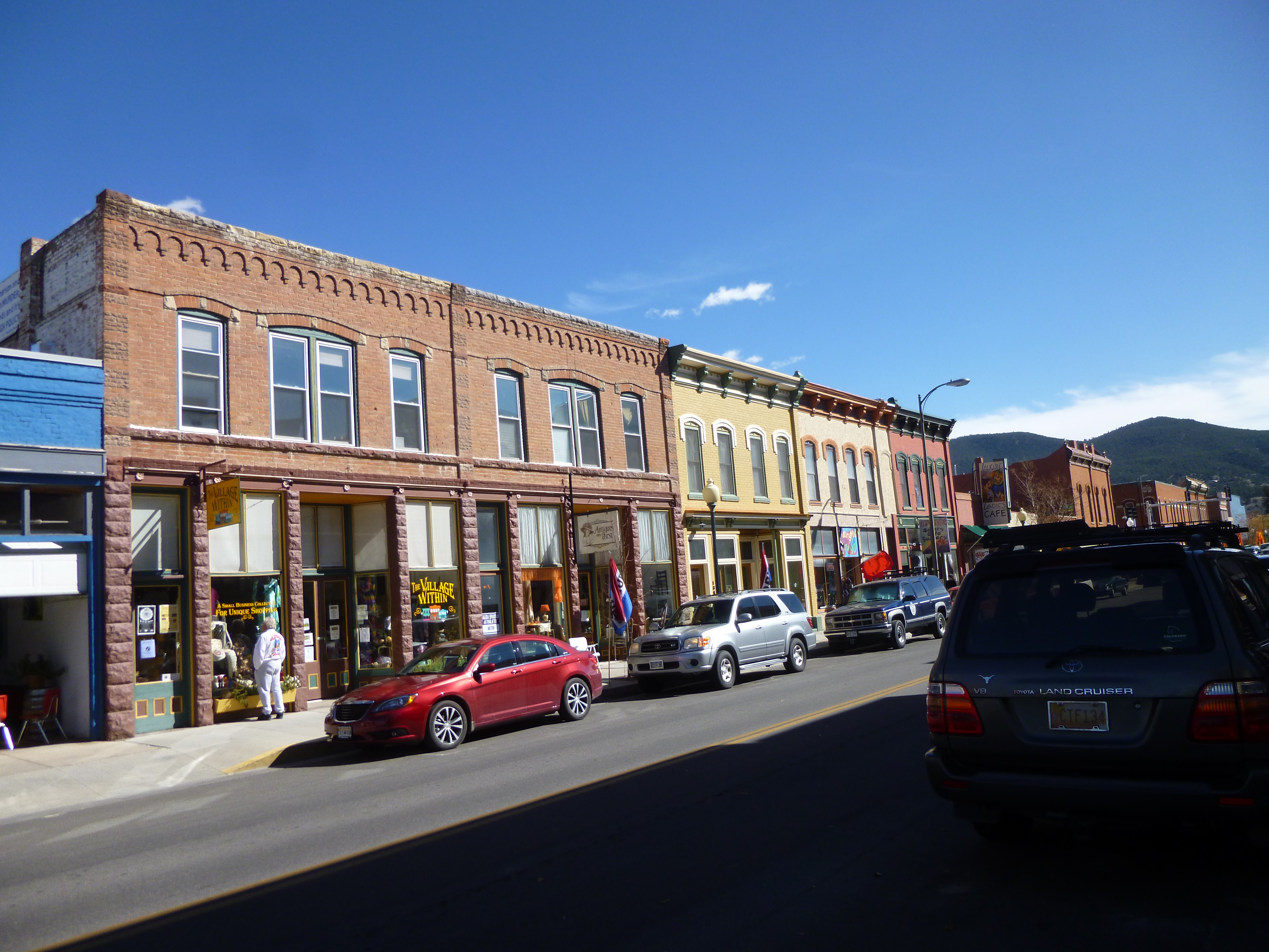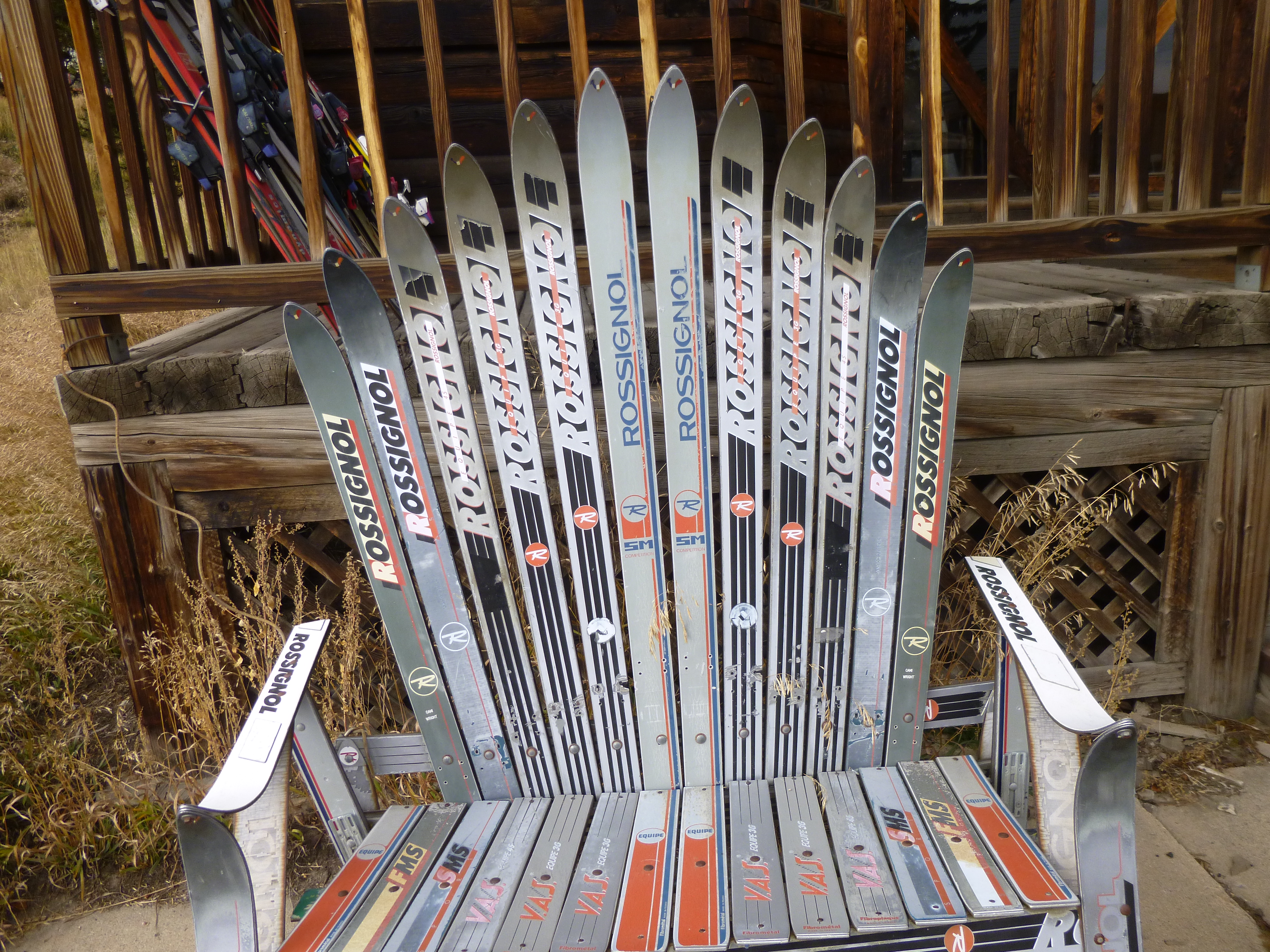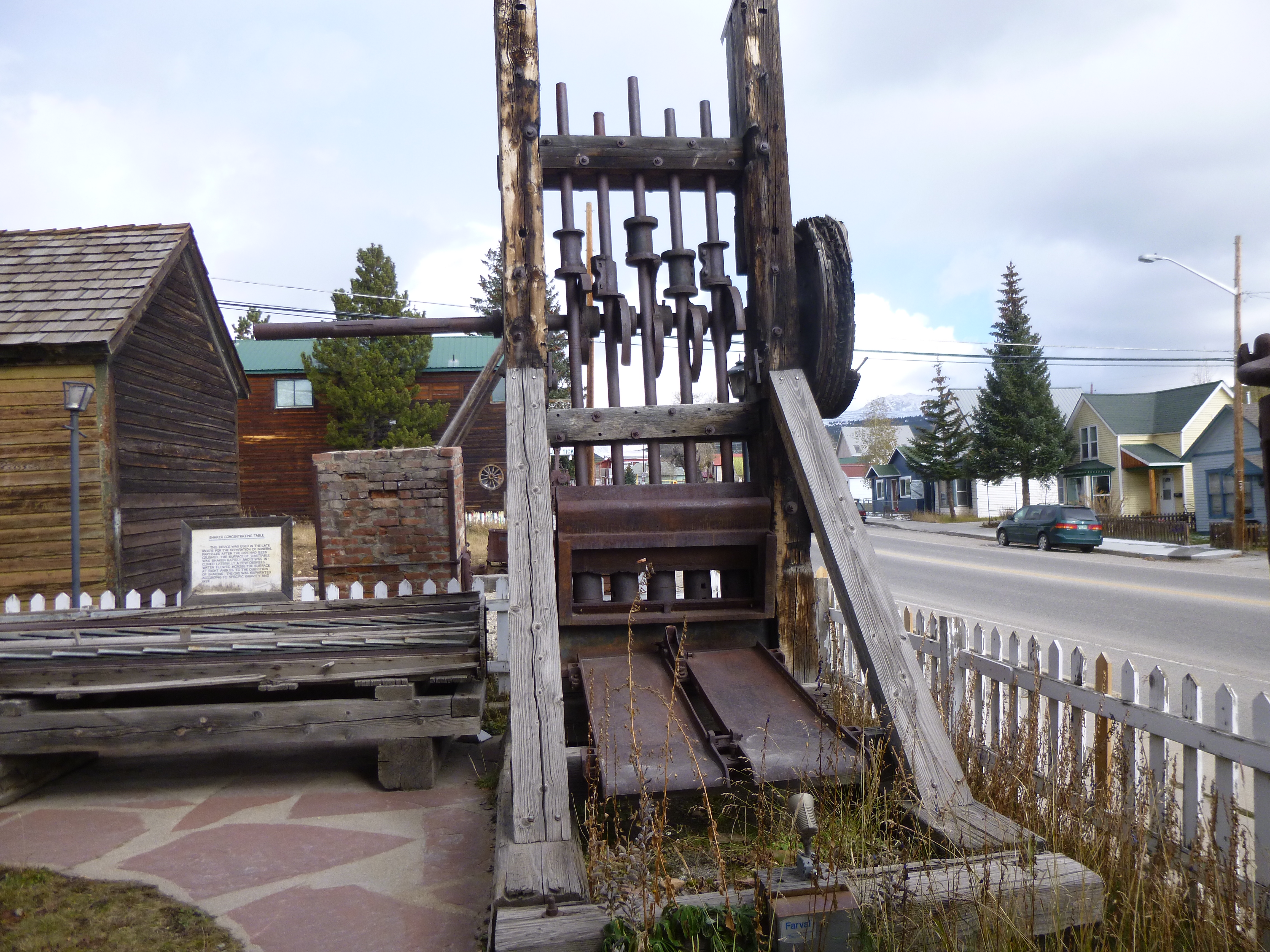 From there we headed through Buena Vista where I walked another mile or so, then continued on toward the gold mining town of Leadville, which is the highest town in the nation at an elevation of 10,100+ feet. This town also had a lot of character and lots of old mining equipment to look at. We walked past the blocked off entrance to one of the old mines, and walked down streets that still had rows of old mining homes. There must be a ski hill nearby because there was a winter sports shop with benches outside made of old skiis. I enjoyed the cool fall air and scuffling through all the leaves on the sidewalk. My pedometer said I only walked about a mile in Leadville, but I thought I walked a little farther – must have been the altitude!