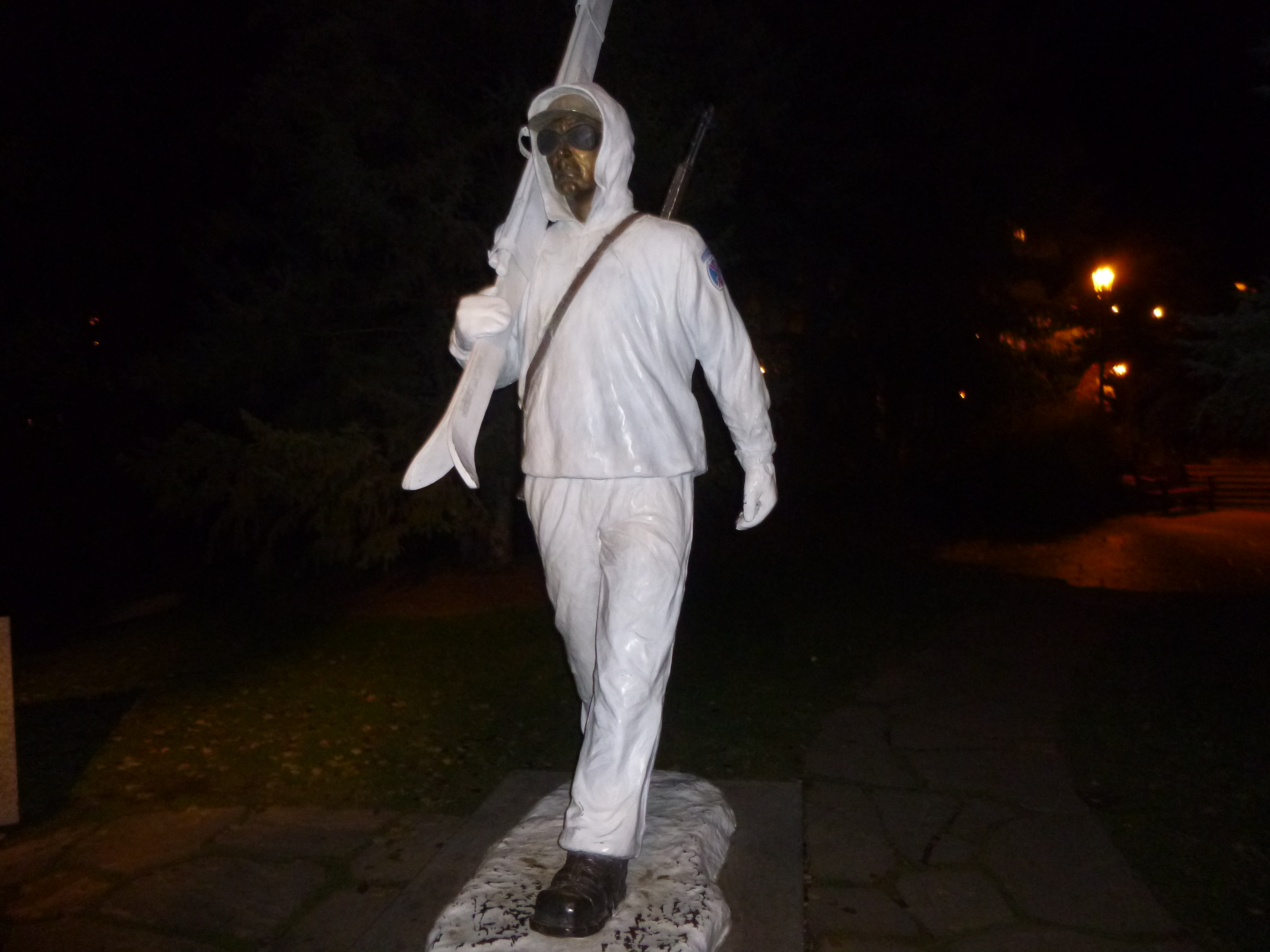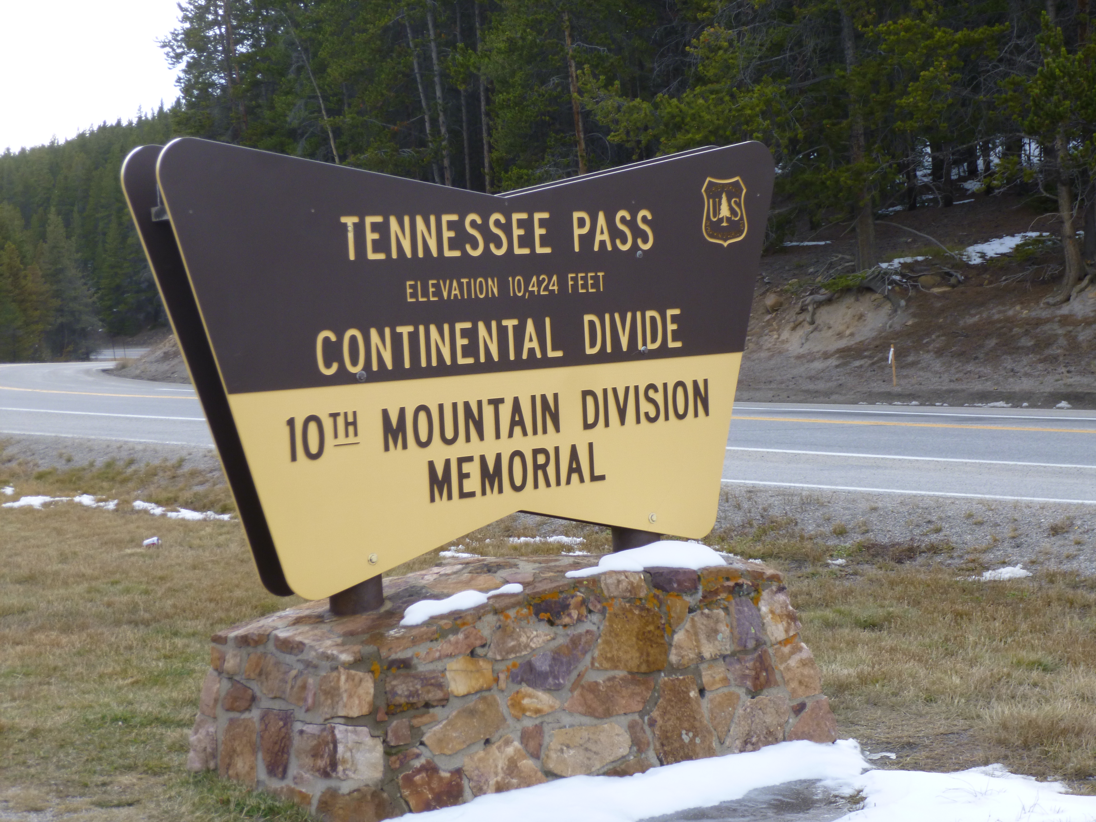 From Leadville I continued driving through the mountains, which were just gorgeous. I drove through a snowstorm, and crossed the Continental Divide a couple times. There were some blink-and-you-miss-them towns, and old train trestles and occasional stands of aspen trees. I simply took my time on the mountain roads and enjoyed the drive. Eventually I came to Vail – I figured I should walk through at least one of the big ski towns. I found the Gore Valley River Trail and Tula and I walked a little over 3 miles along the river as the sun was going down. At one point we walked under one of the chair lifts, and we passed countless condos and townhouses that are rented out to skiers. But most of them were empty and dark at this time of year – the calm before the storm. Then we went to the actual town of Vail, which was a very fancy, pedestrian-only village. It was pretty much a large expensive resort, designed to look like a Bavarian Village in the Alps, with exclusive shops and elegant restaurants. This is a quiet season and only a few restaurants were open. I walked another mile and a half up and down the quiet streets and tried to imagine it at the height of ski season.