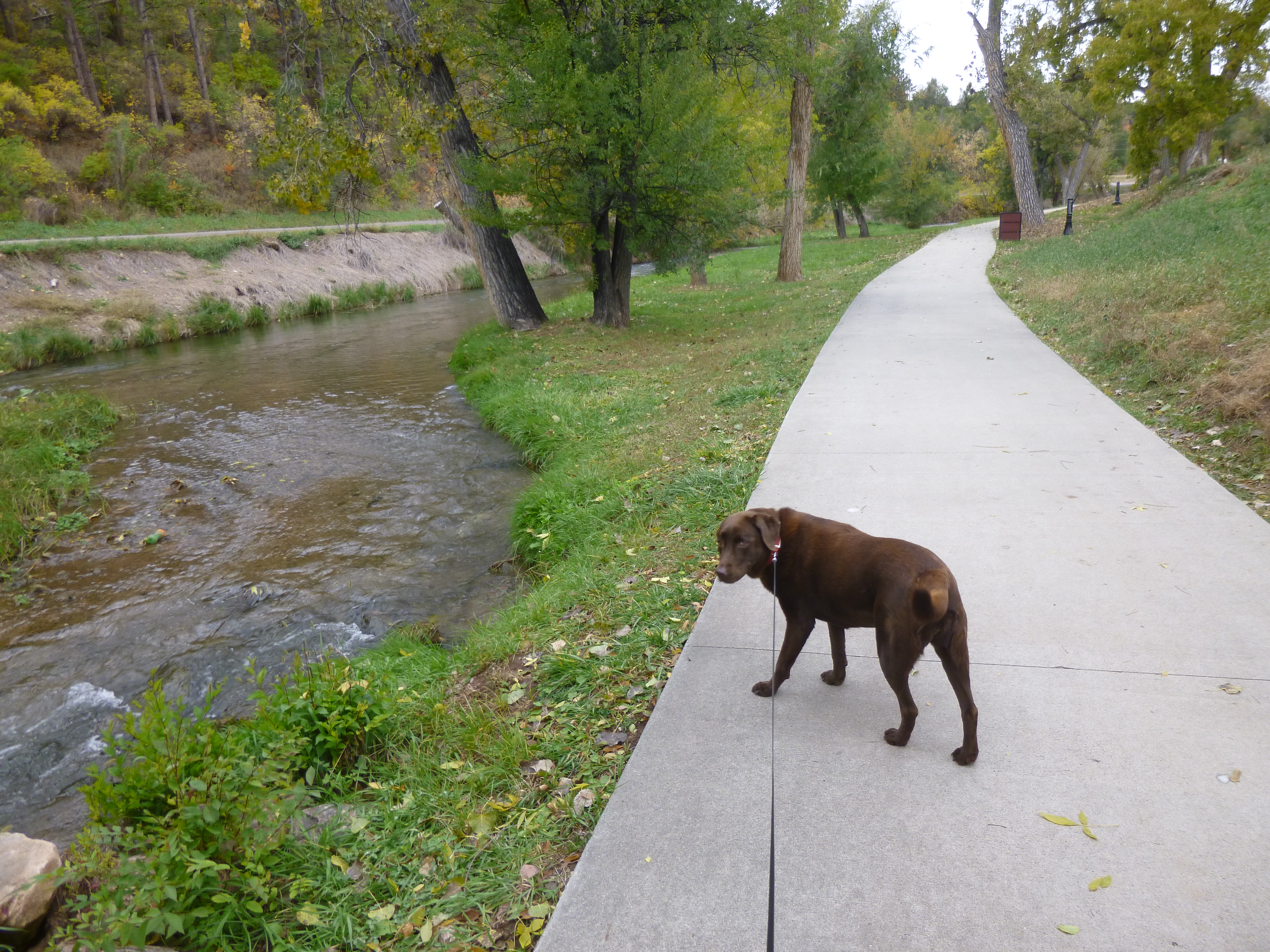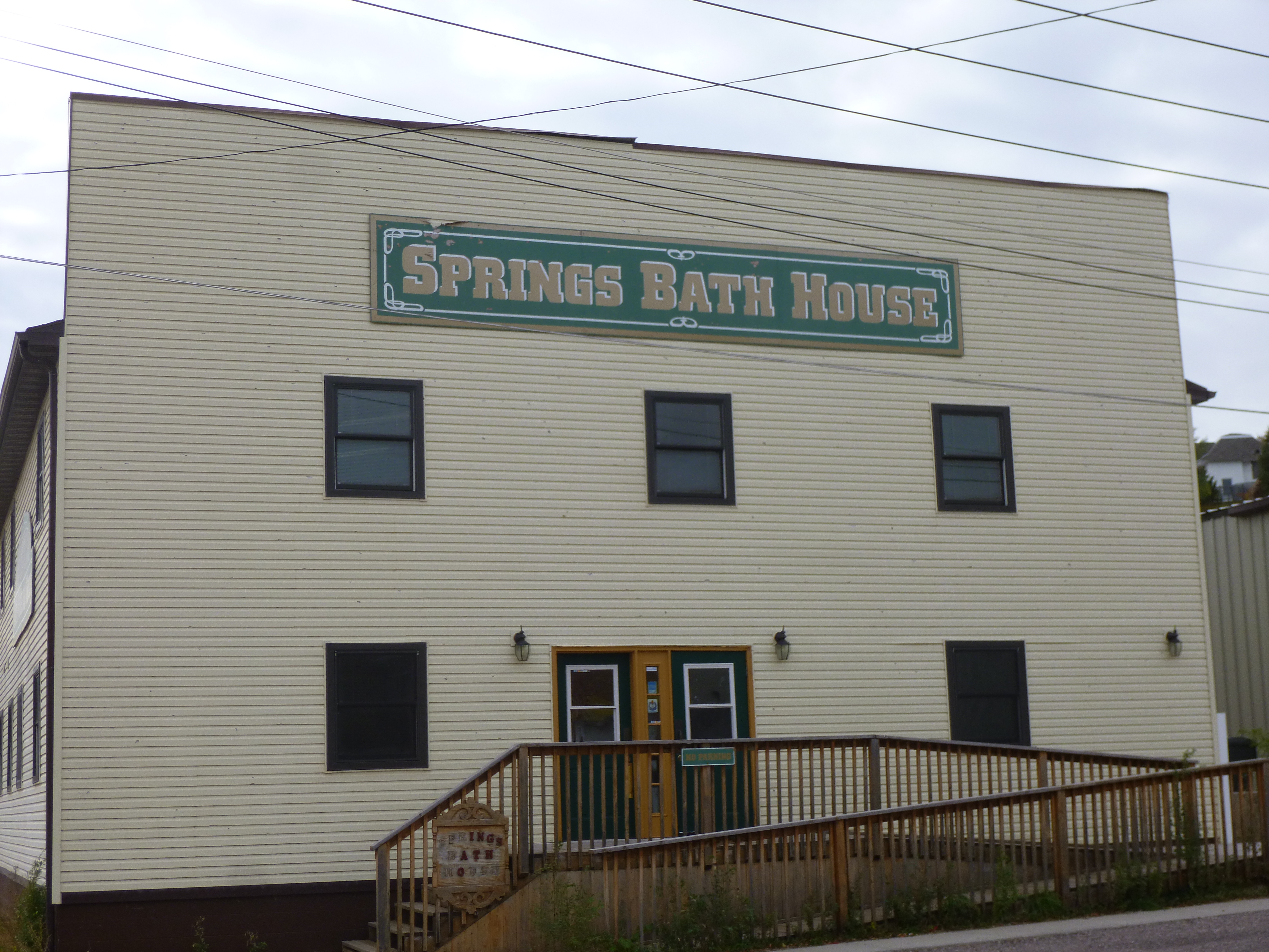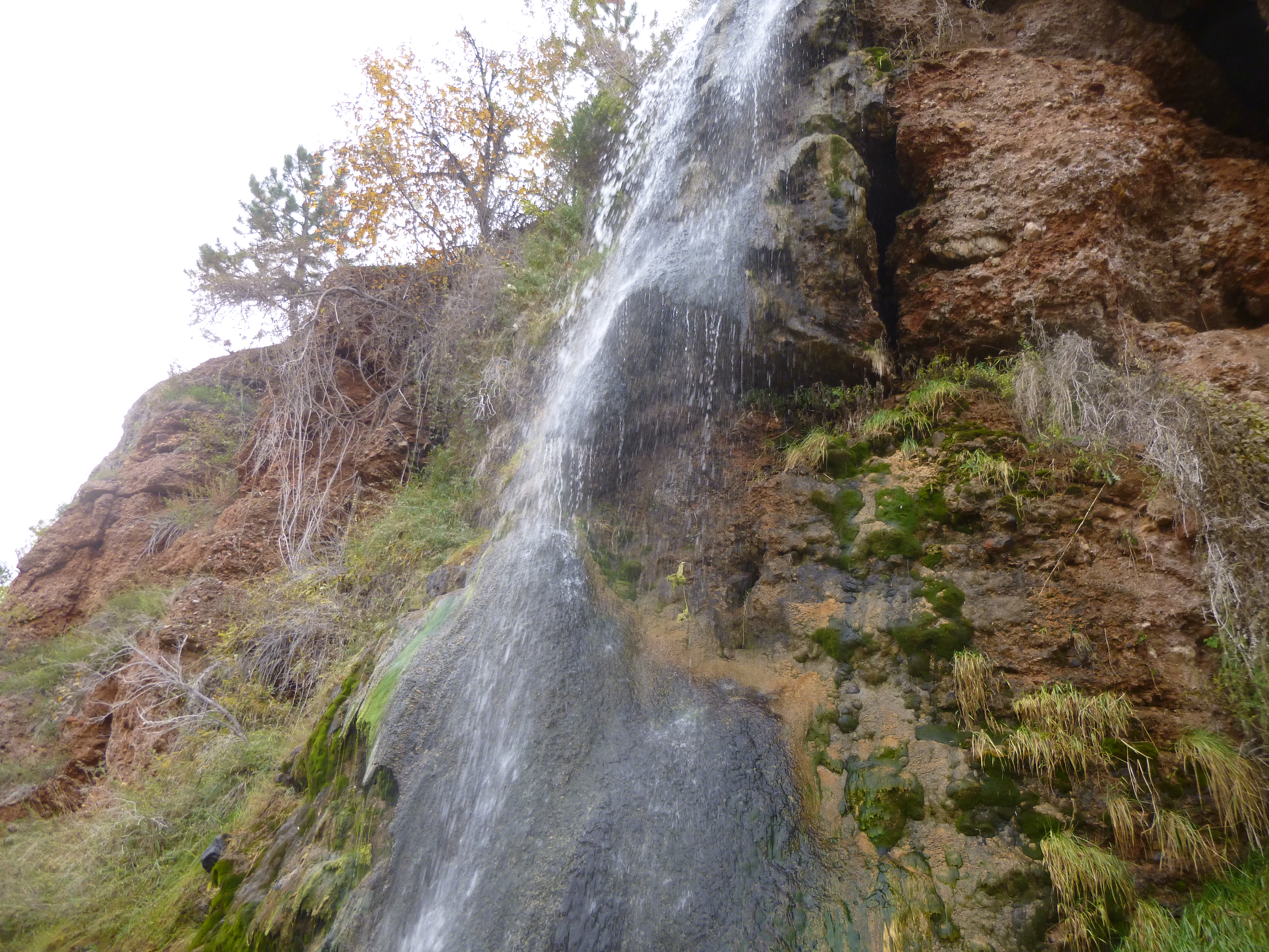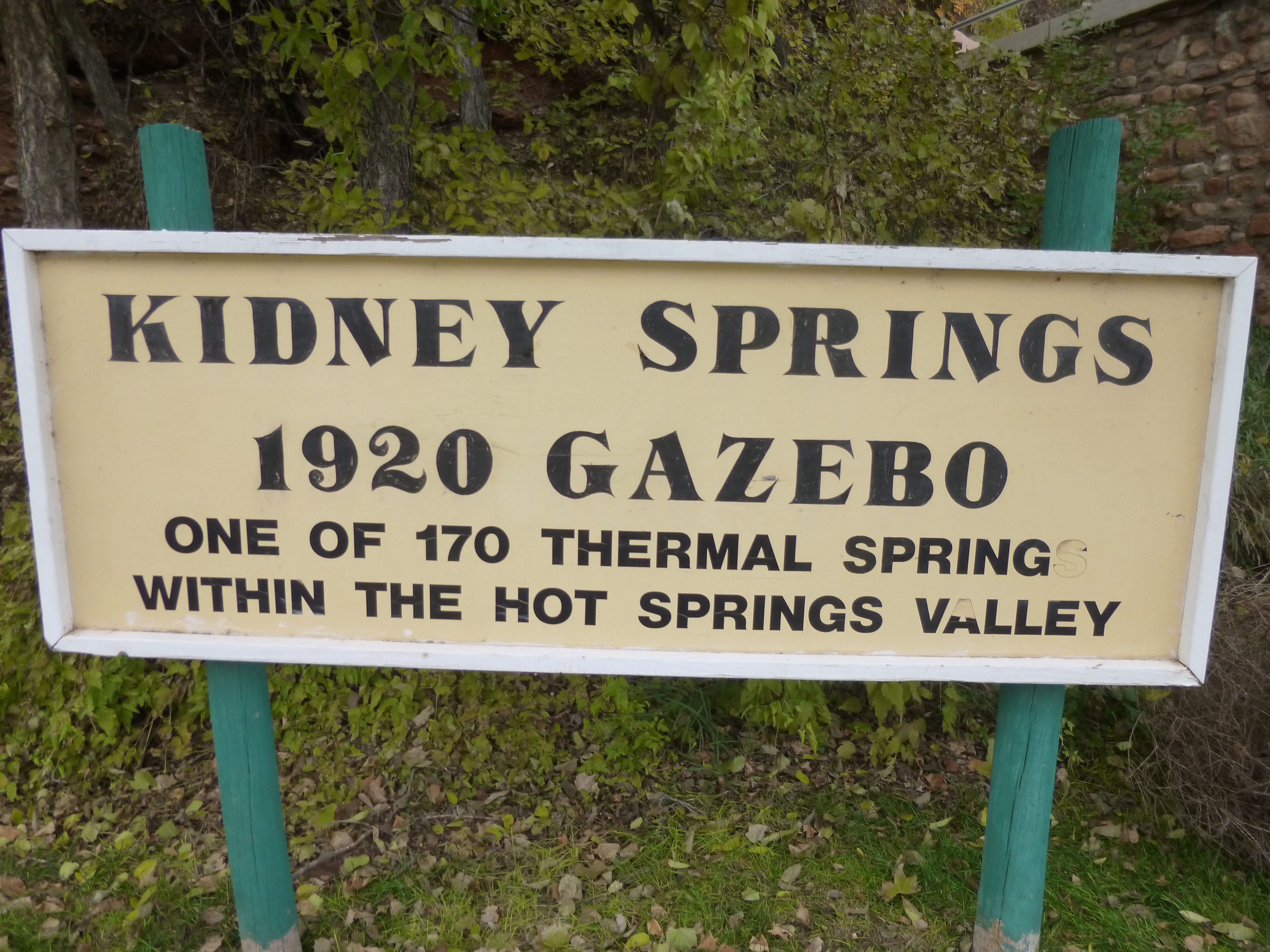 Tula and I started our day with a 3 mile walk in Hot Springs so that I could see the springs by daylight. We walked along the river on the Freedom Trail for a while first, then followed it right into town, where the hot water falls down from the rocks. There are 170 springs in this area, and a soak in the warm waters was supposed to cure all sorts of ailments. So this became a resort town, and huge hotels and bath houses were built out of the local sandstone. There is still at least one bath house building in town. While I was out walking, I saw someone fill a couple bottles with warm water right from the spring. I felt the water and it was warm, but not nearly as hot as the spring waters in Hot Springs, Arkansas. Hot Springs is also a paleontological site – mammoth bones were found in a sinkhole in 1974, and research and excavations are still going on.