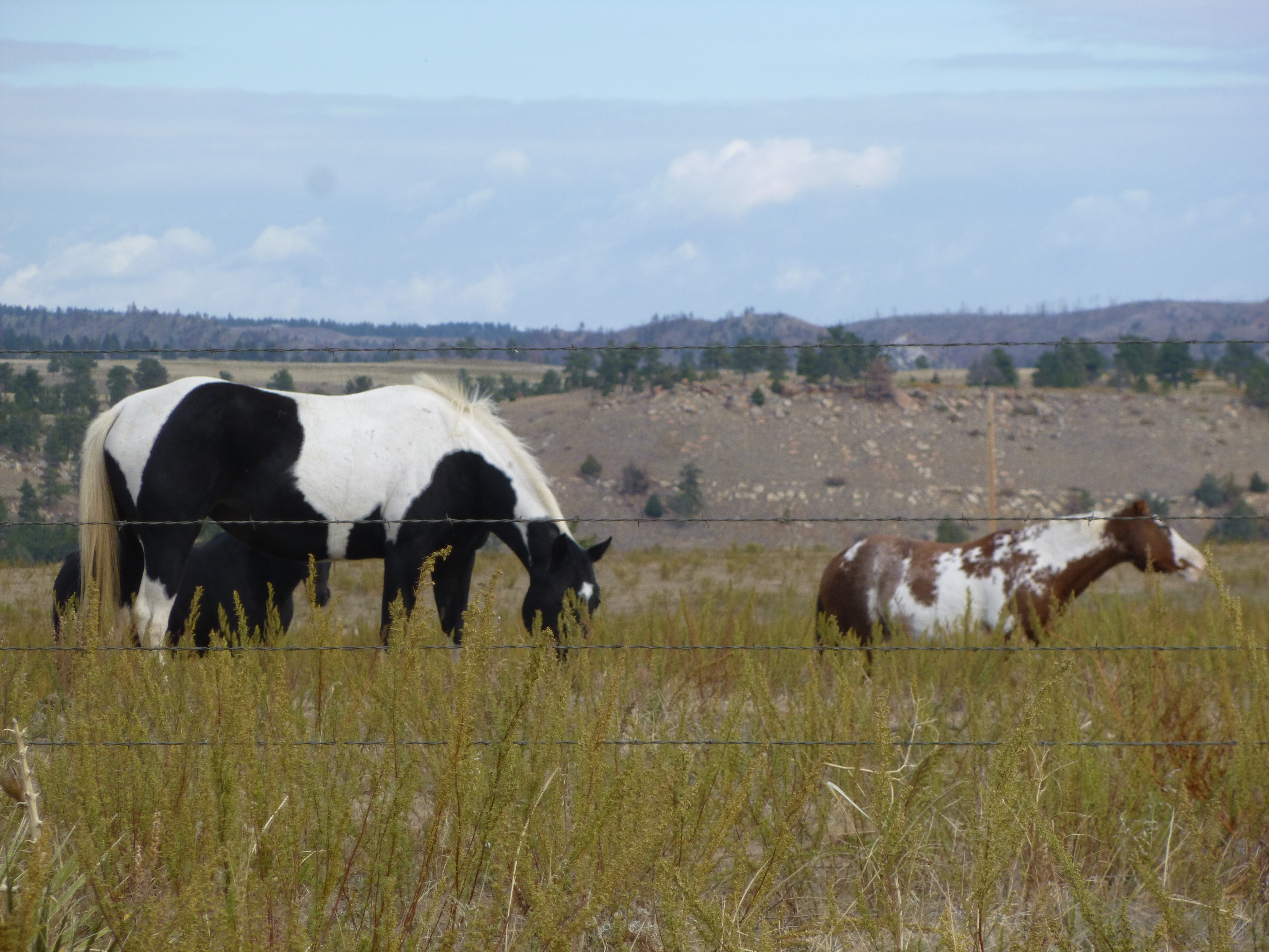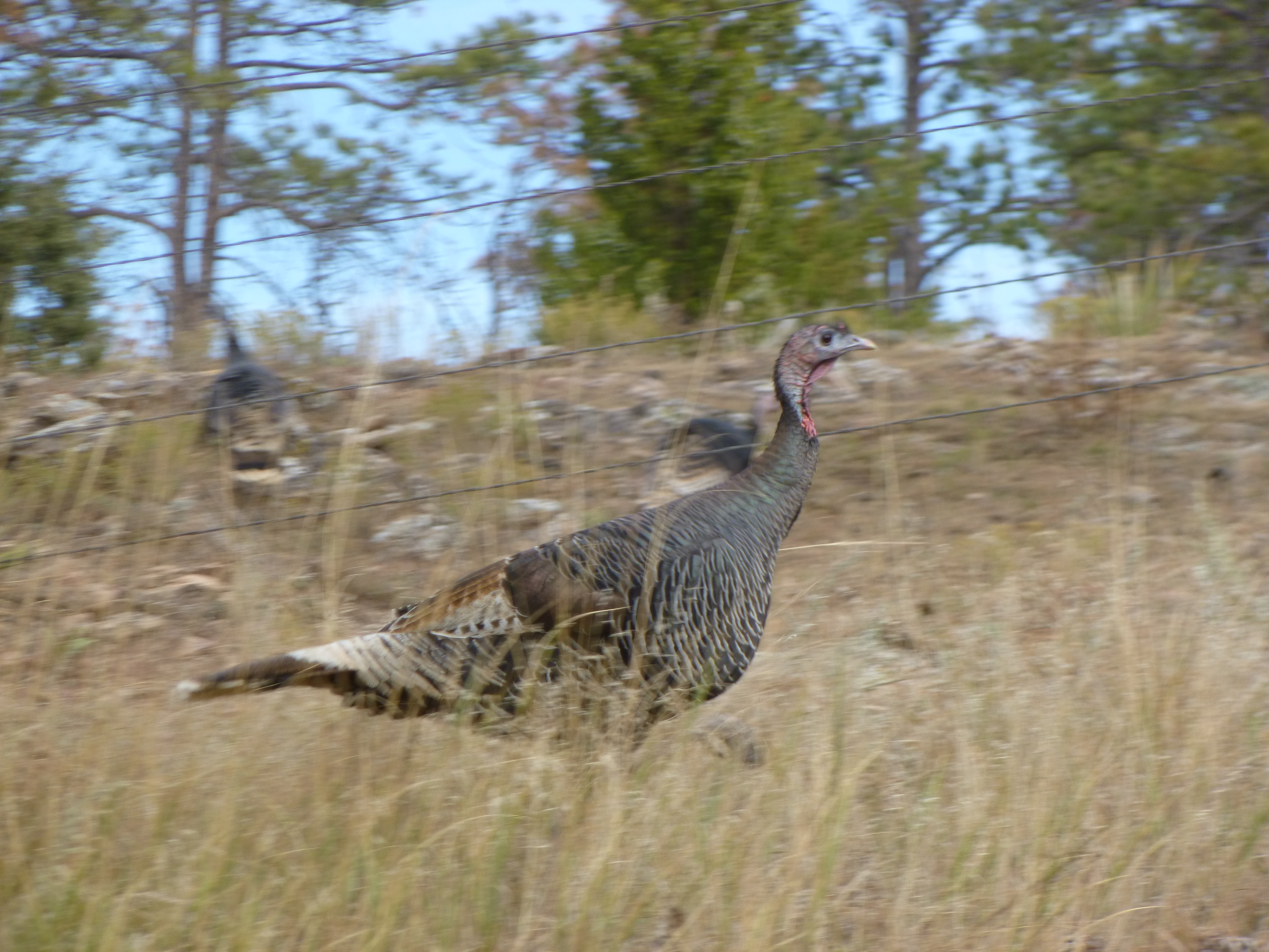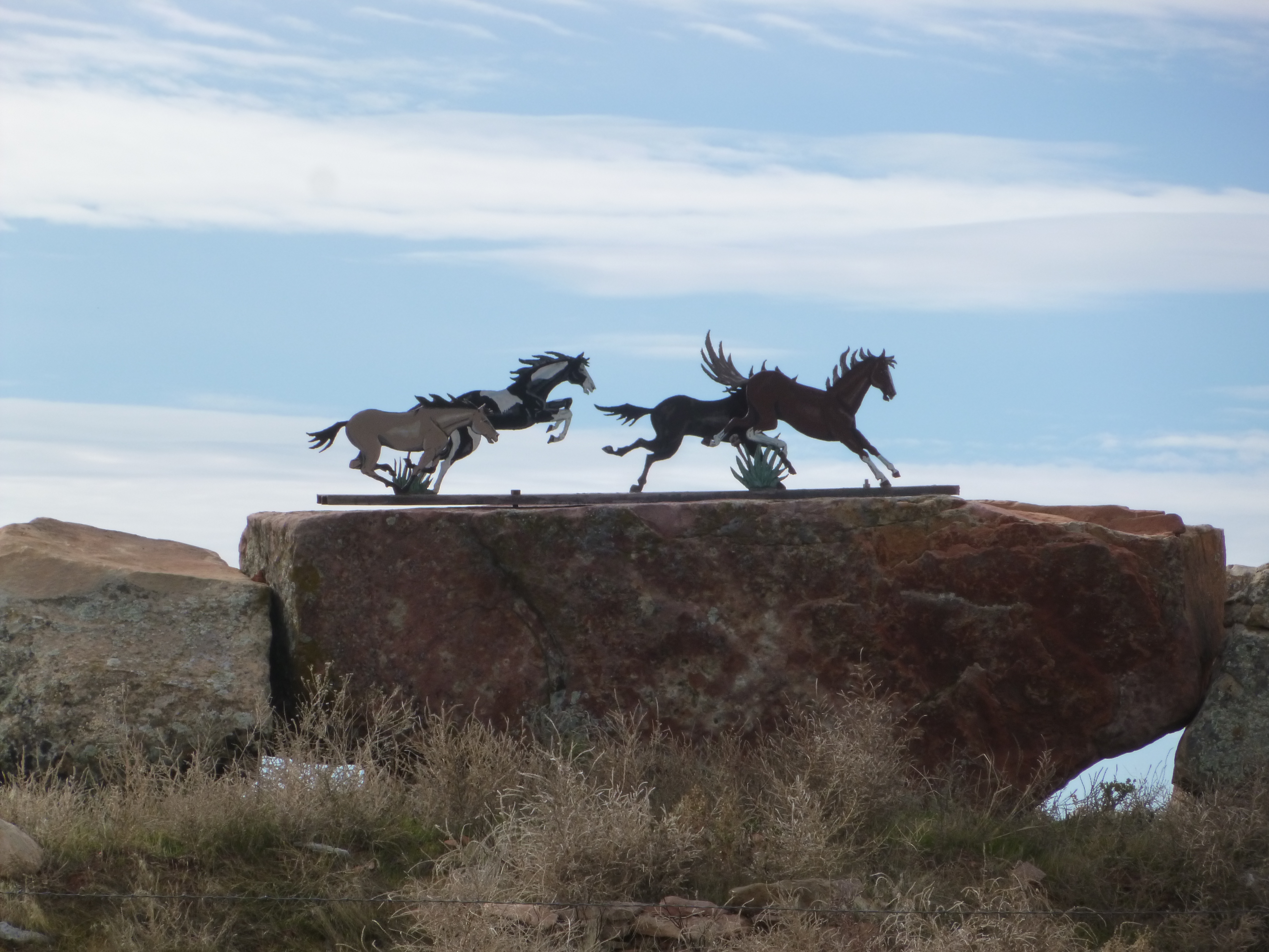Once I had seen everything I wanted to in Hot Springs, I headed south a bit to the Wild Horse Sanctuary in southwest South Dakota. There are several areas around here where movies have been filmed and I passed a sign pointing out one of the locations for the movie Hidalgo. And there were more turkeys around too. The Wild Horse Sanctuary is home to over 600 horses and they have 11,000 acres of prairies, rock canyons and rivers to roam around in. There is a herd of Spanish mustangs, and the DNA for the stallion of that herd has been traced back to the Spanish conquistador horses. They’re beautiful – buckskins, bays, blacks, grullas – all my favorite horse colors! There is also an American herd which includes a lot of pintos, and they’re kept separate from the Spanish horses. The Wild Horse Sanctuary also has a handful of Choctaw Indian ponies – there are not many of them left, and none of those are for sale. I actually saw both herds on the drive into the visitor center. Back in 2006 when South Dakota was my “state-of-the-year” we visited this sanctuary and took one of the tours out to see the horses. I wasn’t planning on doing that today, and was happy to see lots of the horses when I drove in. As a longtime horse lover, I wanted to make a donation to the Wild Horse Sanctuary. Even though these horses are wild, they get supplemental hay in the winter, and there are other expenses as well. They also sell some foals, yearlings and 2-yr-olds to help cover expenses. The lady I met at the visitor center was nice to talk to. She told me they had been spared the heavy snows that had blanketed the area a short time ago a little further north. This is their quiet time of year, and she was happy to get a donation.