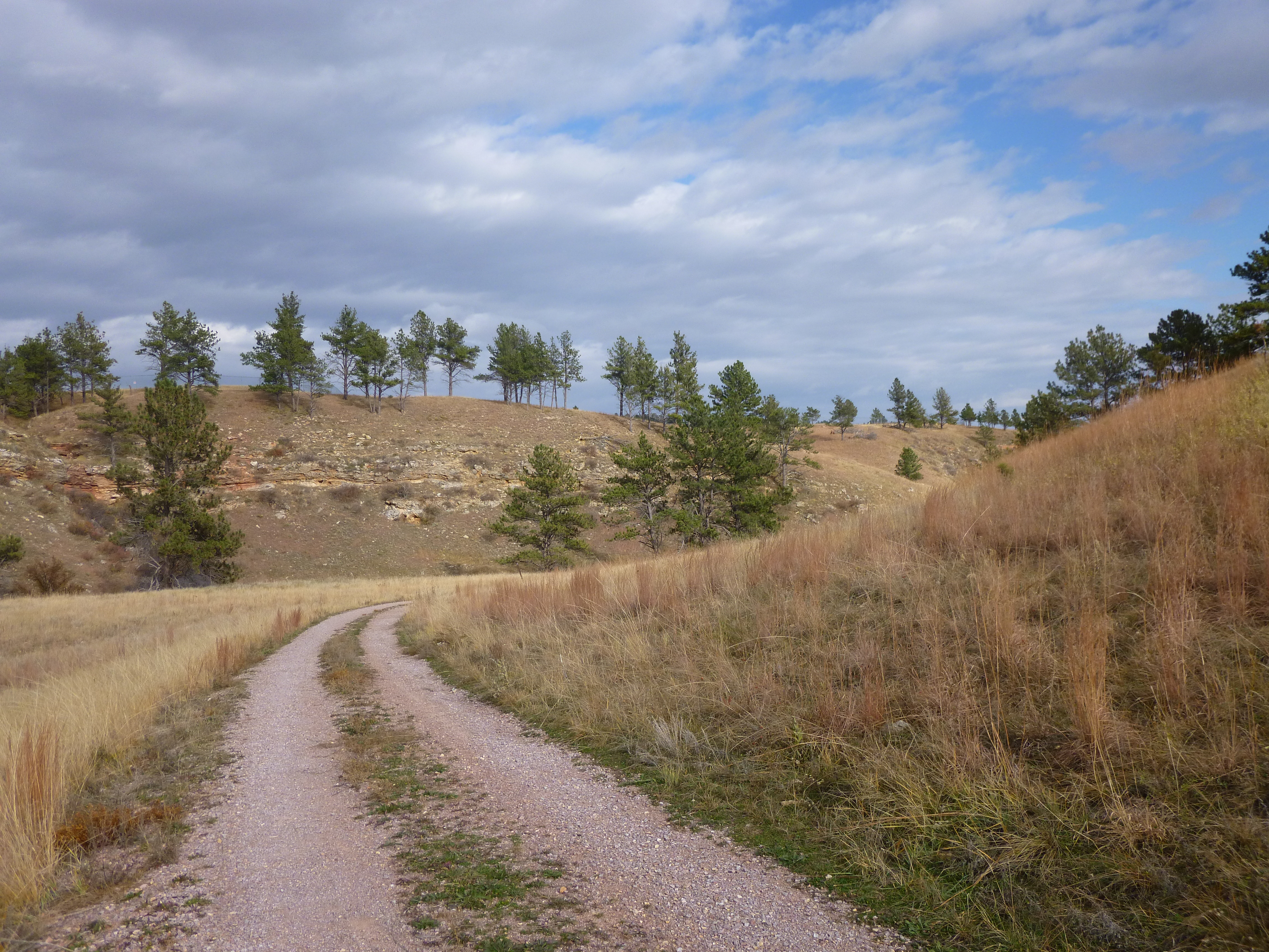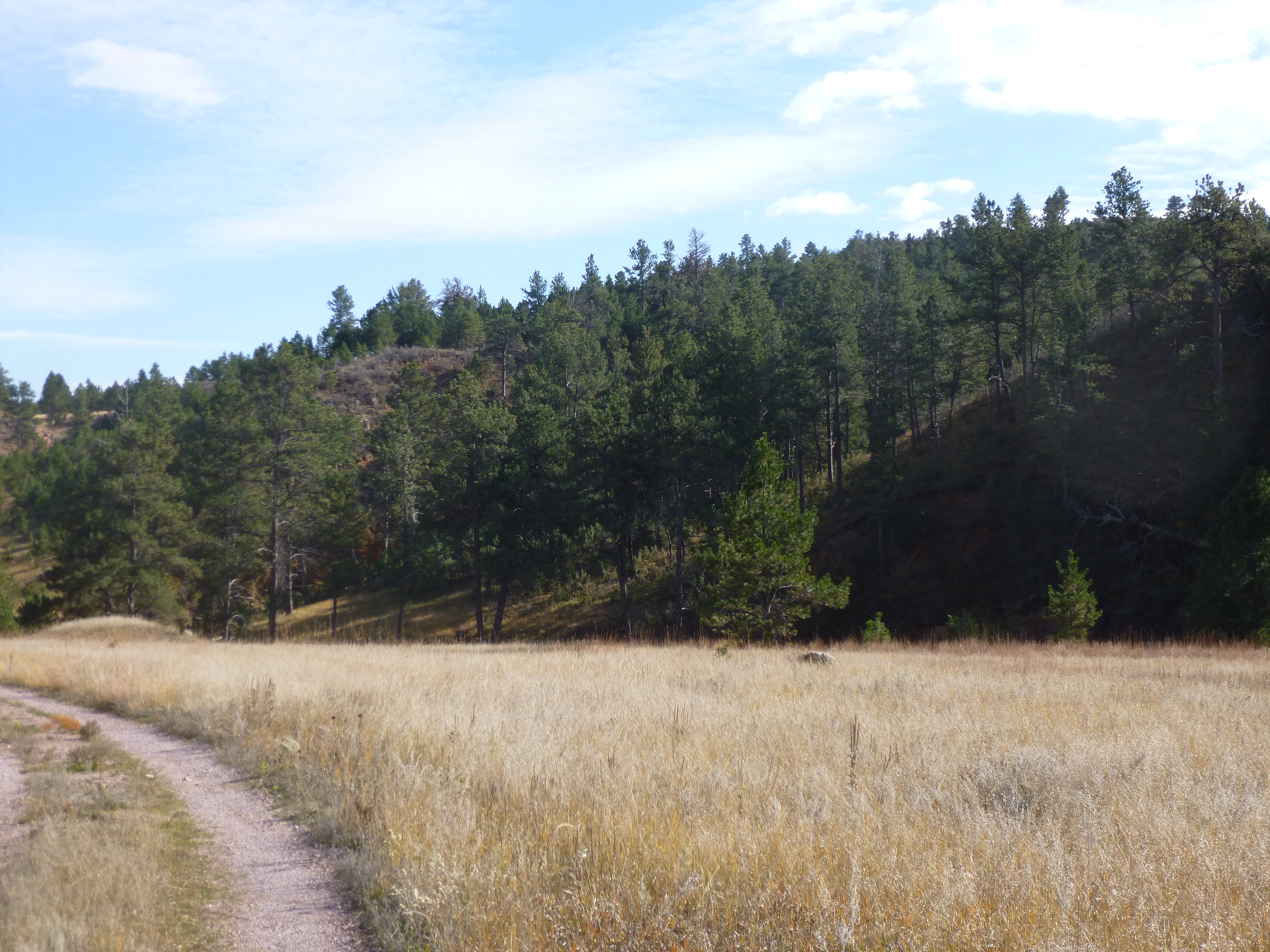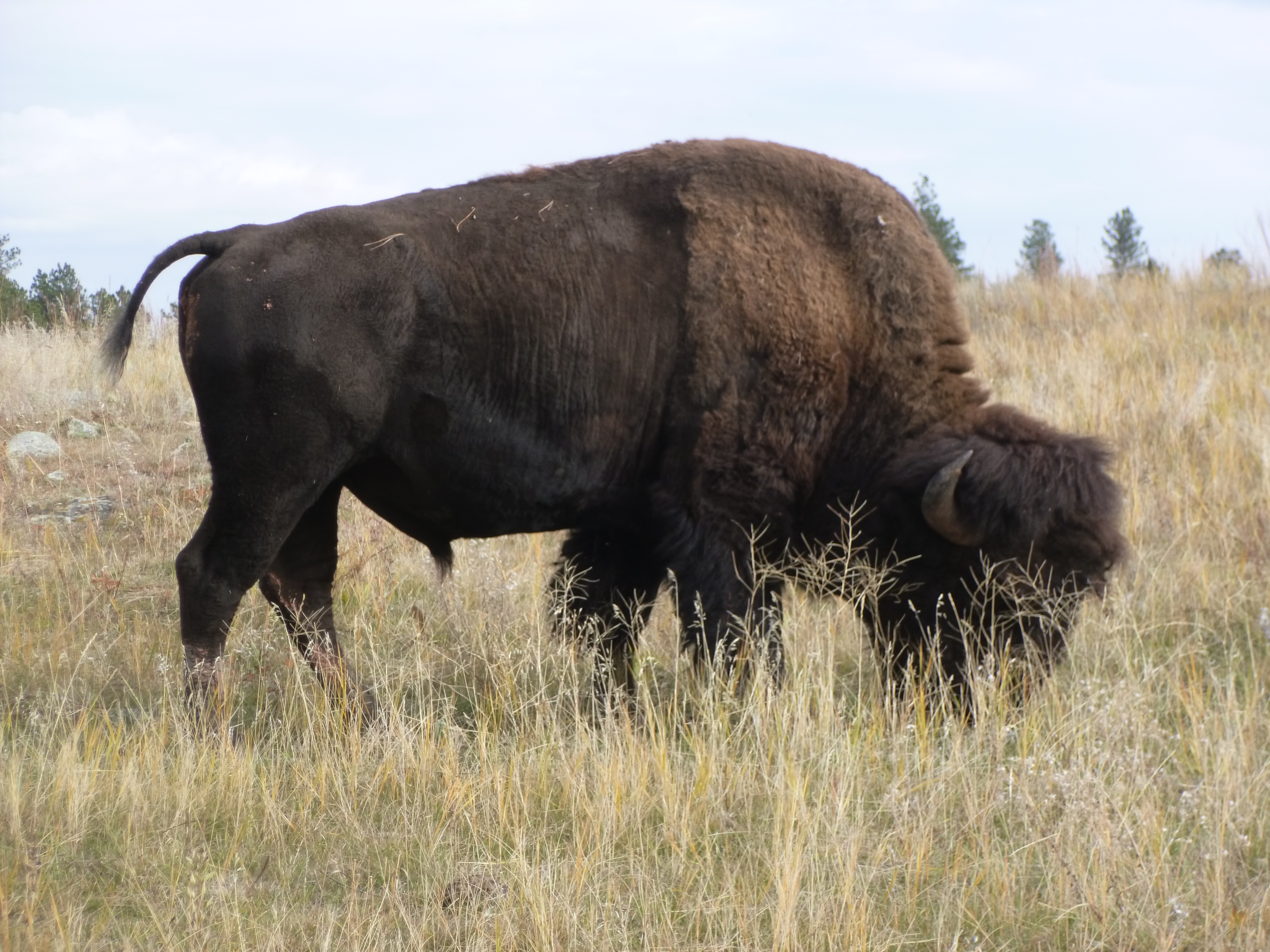 After I left the sanctuary, I started to head north toward Custer. The road I was on went right through Wind Cave National Park and I decided to stop and do some walking on the Wind Cave Canyon Trail. It had been a while since I’d been able to stop at a national park! I covered over 3 1/2 miles on the trail – and I’m sure parts of the Wind Cave were under my feet. I saw a lone buffalo right at the end of my walk on the next hill over – I always like seeing them. I saw more buffalo as I continued through the national park, including one who decided to cross the road right in front of me.