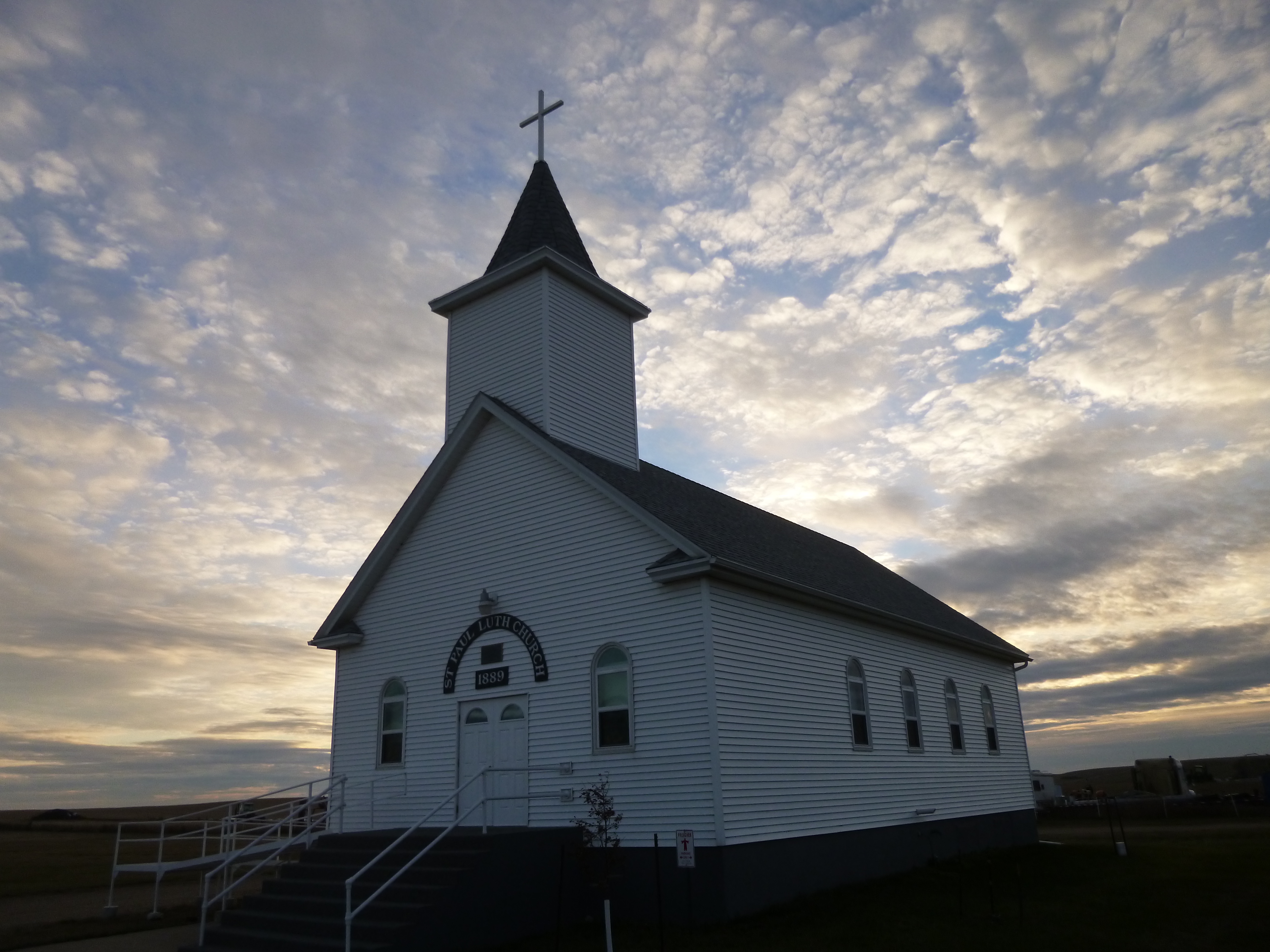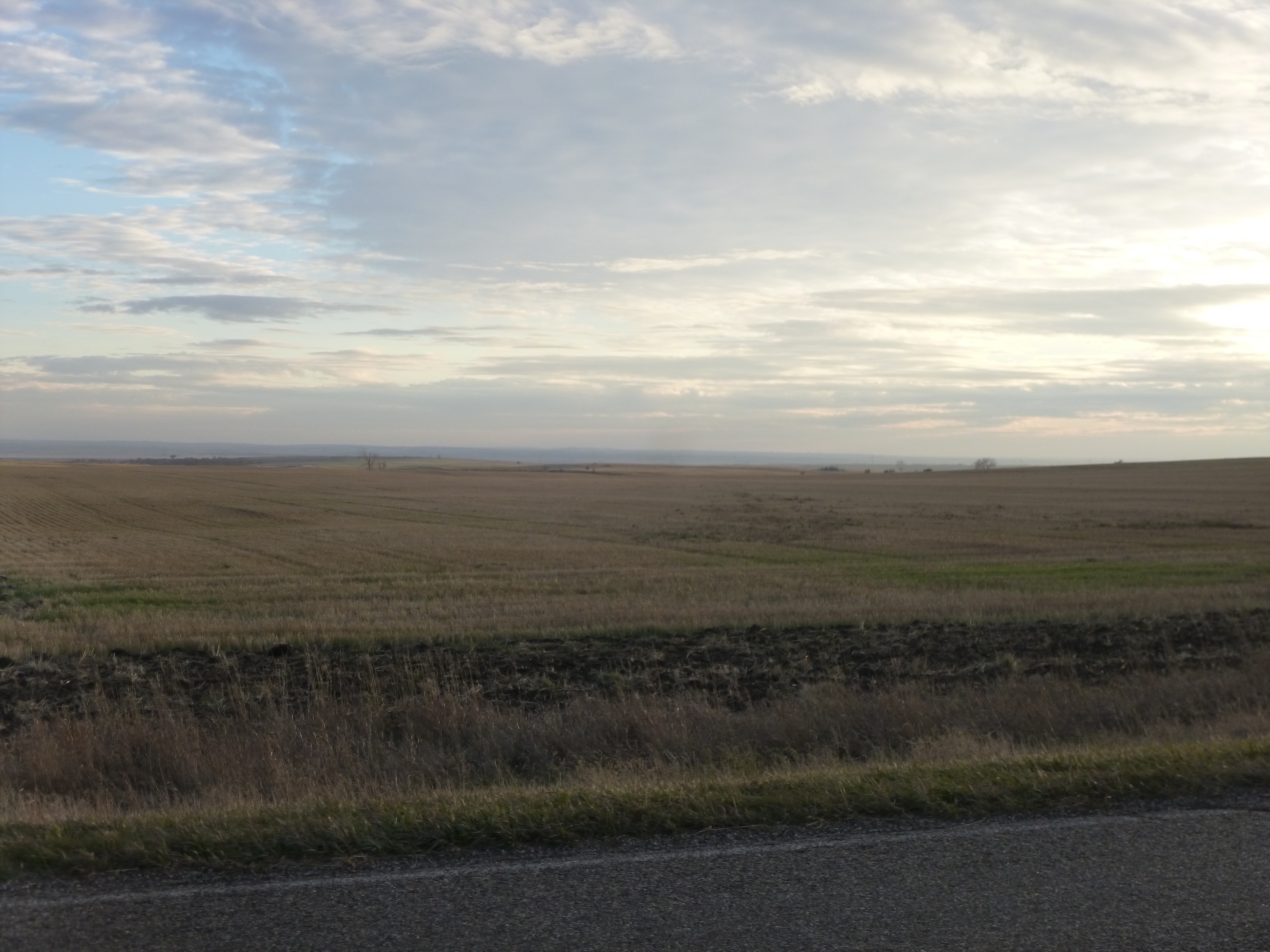 I continued heading north through the prairieland, and at one point I passed an old church out in the middle of nowhere. As it was getting dark, I made it to the town of Riverdale, where Tula and I got out for a final couple miles of walking for the day. The town of Riverdale sits by the Garrison Dam on the Missouri River, and it’s one of the biggest earth-filled dams in the world. Today was Halloween, and there were kids in costume out trick-or-treating. It was a neat, tidy town to wander through, and when I was done with that walk, I had covered almost 10 miles today. Then I was happy to sit in the car for the drive up to Minot, where I stopped for the night.