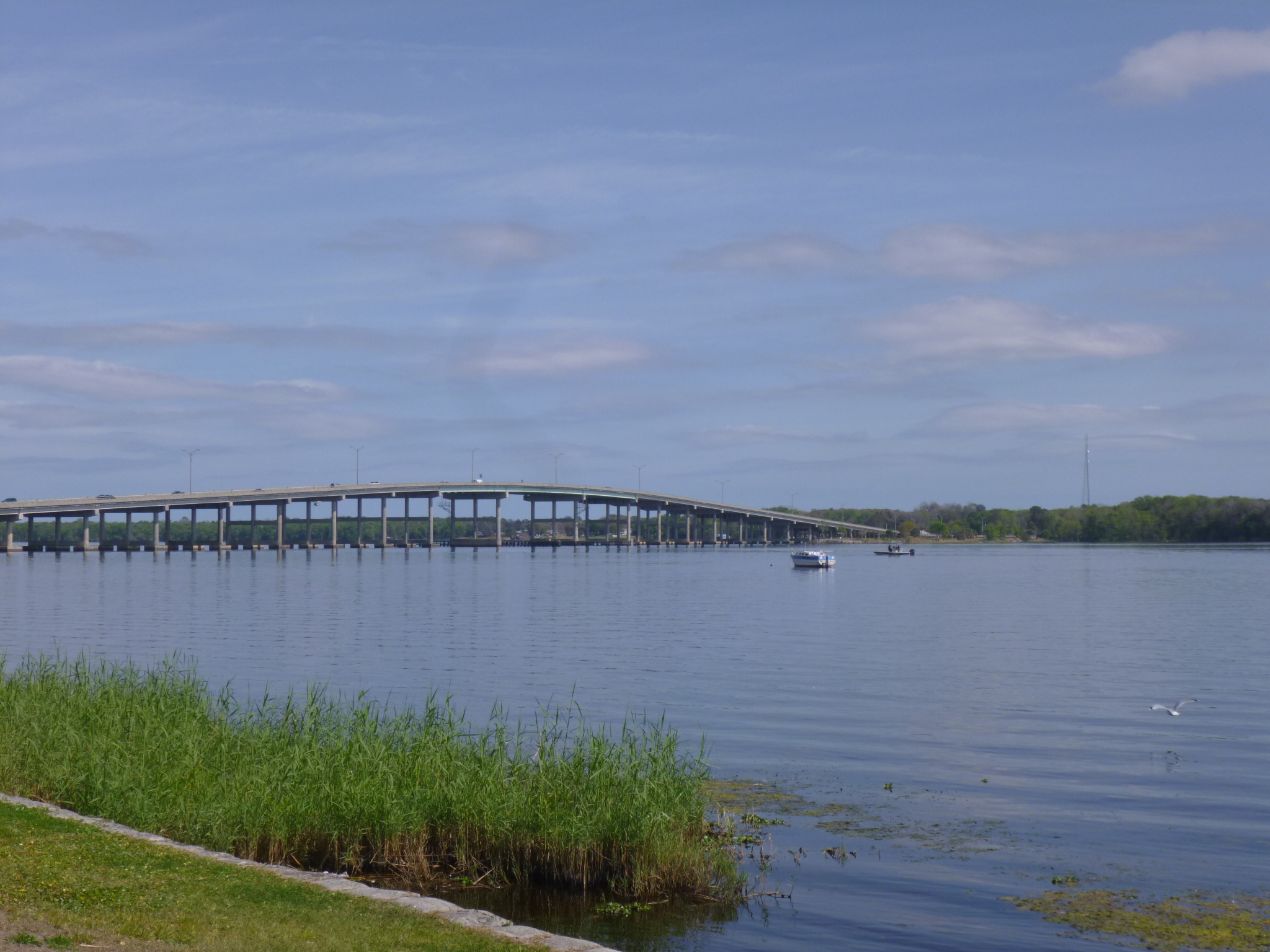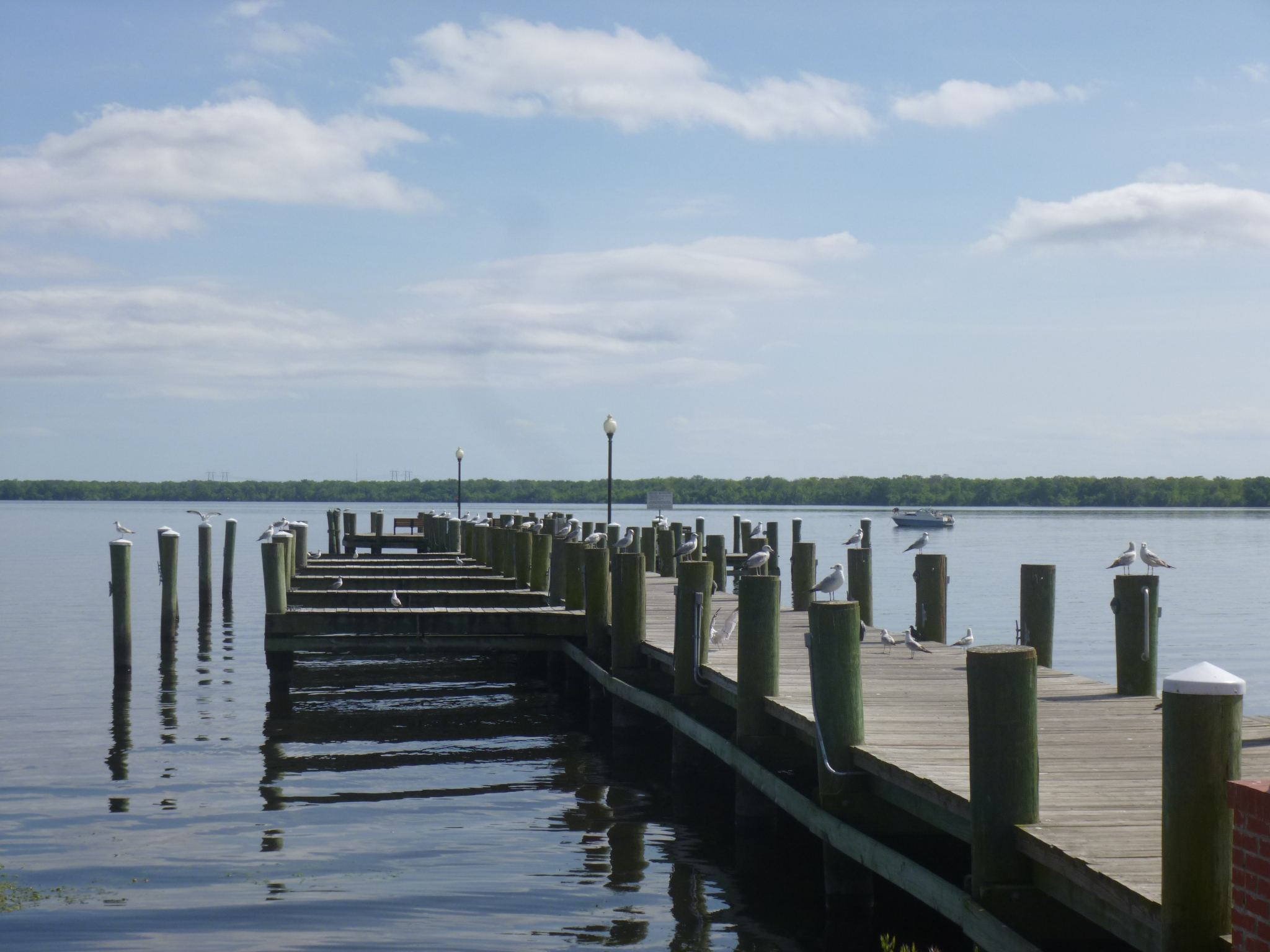 I had to backtrack just a little to the town of Palatka where I was headed to make my donation. But I didn’t mind because it was dark when I drove this way last night. I’m in agriculture country and there’s lots of fields – some ready to harvest and some not. It is apparently harvest time for cabbage (which seems strange to me because it’s only February!) because not only did I see fields of cabbages that looked huge, I also saw some trucks loaded with cabbage. We made our way back over the St Johns River and found the Heart of Putnam Community Service Center. I had called ahead to see if a food donation or a financial donation would be most beneficial, and they said a financial donation would be most helpful. This agency is a “one-stop service center housing a group of non-profit agencies” so that the different groups can combine efforts and resources so there’s no overlapping of services. That seems to be an efficient way to approach this! There were people in the waiting room, and they were busy, so I gave them my check and left. Then I got out for a quick walk through town, leaving Tula in the car for this short bit. At one end of town I found a park by the river, so I drove back there and got Tula out, and we walked through the park, and along the river on the sidewalk in front of some very nice river-front homes, covering a couple more miles. When we returned to the park, the sheriff department must have been conducting a training exercise in the water because there were about a half dozen sheriffs out on jet-skis – or maybe they were looking for something, or worse yet, someone. They seemed to all be in the same area.