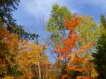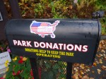 So, my first place to walk today was in Presque Isle – since I had stayed 2 nights in this neck if the woods, I figured I better walk around and see the town a bit! First I stopped at a laundromat to get some clothes washing while we walked. I went back to get them in the dryer and we walked some more. We covered 3.3 miles, and after a quick stop at a gas station to put air in all my tires (a buzzer had come on indicating tire pressure was about 5 pounds low in each tire. It was the coldest night of the trip so far, but I don’t know if that would cause low tire pressure.) I put air in, and everything has been fine since, and I headed south with everything clean. It was a pretty drive through the mountains with long ups and downs through peaks and valleys – and pretty colors. I pulled off for a good view of Mt. Katahdin – less cloudy that it was a few days ago. We stopped in the town of Patten and walked another 2.2 miles. Eventually I picked up I-95 and stayed on that until I was a little west of Bangor. Then I had to make a decision about which way to go. My preference was to enter New Hampshire toward the north end of the state. But that’s the Great North Woods part of the state, and I didn’t want to do too much driving in the dark when I got into New Hampshire. So I called ahead and was able to make a reservation in Gorham, only about 8 miles from the state line. Knowing I had a place to stay in New Hampshire gave me the freedom to take my time on a 2-lane road across western Maine. I stopped in the town of Skowhegan to fill up with gas and finish my walking before it got dark. I came into Maine with only about 1/3 tank of gas, and despite all the miles driven, I was able to leave Maine with a full tank of gas! I still had a little money leftover in my weekly budget, so I figured it was time to get more dog food and treats, and some staples for me. After I bought what I needed, I still had a little money left, and I put that into the United Way container at the checkout.