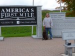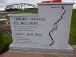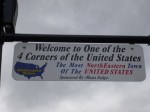 My goal today was to drive around the little circle of roads all the way up to the farthest northern part of Maine I could get too. We started off with a mile and a half walk in the state park to get warmed up, and then went to the nearby site of the launching of the first successful transatlantic hot-air balloon crossing. Then we got in the car and headed east toward the Canadian border and got out in the pretty little town of Fort Fairfield and did another 2 1/2 miles of walking. It’s still potato country around here! Then again in Van Buren I got out and walked another mile. By this time we were right on the river separating Maine from New Brunswick, and I walked down the hill almost up to the border crossing station – sort of wish I’d had my passport and Tula’s rabies papers so we could just walk into Canada, but that probably would have annoyed the crossing guards and wouldn’t have served any purpose for me other than to be able to walk into another country instead of drive! So we just turned around and walked back! It was Sunday, and it kind of unusual hearing church bells ringing from another country! There’s definitely a French background in this area. We continued along the river up to Madawaska, and I walked another mile and a half. This was a more industrial sort of town – there were paper mills (I’m pretty sure) steaming away even on a Sunday afternoon. It was a hilly town and when I walked up into the adjoining neighborhood and looked back toward the river, the view was mostly white smoke/steam in places. In town I began to notice a couple signs that made me pay attention – Madawaska was one of the 4 “corners” of the country! I knew I was as far northeast in Maine as I could get, but I hadn’t expanded that thought to realize I was in the most northeastern town of the U.S.! I thought that was pretty exciting. And I had also read earlier that Highway 1 begins in Fort Kent where I was headed next. I’ve been on Highway 1 a lot (all the way down in Key West where it ends too) and for some reason I never thought about where it actually began, and I was almost right there. It makes me feel a little dense that I don’t think of these things ahead of time, but then it’s always such a wonderful surprise when I stumble upon them! But I should try to be more aware of these things. I finished my walk and began the drive to Fort Kent – now heading south a bit. I was just as far north as I’ll be in this country until I’m in Alaska. As I was driving out of town, I noticed a big colorful sign about Four Corners Park, so I had to pull in. It was a charming park – and actually envisioned and created by motorcycle riders. Some years ago, Harley-Davidson sponsored an event where motorcycle riders had 21 days to ride their bikes to all 4 corners of the US (Madawaska, Key West, Blaine in Washington and San Ysidro in California.) In each of those places they would have to send in an envelope that they picked up from a Harley Davidson post to prove they’d been there. I guess it was quite a success and inspired them to design this wonderful little park. There were memorials and a fountain and signs explaining about the Four Corners (and I’ll be visiting the other 3!) and although Harley Davidson contributed a great deal to the design and building of the park, it was definitey a community project, and funds were needed for ongoing updates and repairs. I had found my perfect donation-of-the-day! I wrote them a little note along with the donation and left it in the locked mailbox that was conveniently there for that purpose, and I was very happy to be able to help the road-tripping cause! It didn’t take long to get to Fort Kent, although at first I had a little trouble finding any sort of marker for the beginning of Highway 1. I figured there had to be something, but wasn’t positive exactly where Highway 1 kind of merged with streets in town and then turned into a different road out of town. So as I was out walking, I asked a lady, and she pointed in the general direction, and I began to head down there, and she told me she would walk with me since the signs had been moved due to construction on the bridge to Canada (which was part of the reason I was having a little trouble finding it). Although when I saw it (set back a ways) I wondered how I could have missed it! Having driven to the end of Highway 1 in Key West years ago, it was fun to be at the very beginning of Highway 1 (and it makes me want to drive the whole thing – haha! – as if I’m not doing enough driving now. But driving the whole road at one time instead of in bits and pieces like I’m doing in completely different!!). So I enjoyed being there, and I finished up my walking in Fort Kent (and visited the very small fort – a little skirmish back in the US/Canada border dispute days). Then I got a Subway, and began the drive back south on the one main road leading down the center of northern Maine. Aroostook County (which encompasses most of northern Maine) is the biggest county east of the Mississippi and is bigger than Connecticut and Rhode Island combined. I was driving through dusk into darkness (still no moose sightings) to return to Presque Isle, where I got a motel room instead of going back to the state park to camp, because temperatures had fallen into the upper 30s and that was a bit chilly for me. So I stayed in Presque Isle for 2 nights, but in different places! It was a wonderful day.