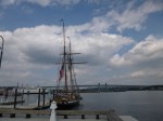 I got everything packed up, then headed for the town of Mystic. Before we got there, I drove past Mystic Seaport, and although I didn’t go in (it deserved more time than I would have today), Tula and I still got out for about a 2 mile walk. It’s overcast, and I figured I better walk while the walking was good. We got sprinkled on a little, but nothing major. i decided I would head a little farther east to Stonington, almost to the Rhode Island border. It was another pretty little town which didn’t seem to be quite so touristy. It almost seemed to have a bit of a European flavor with narrow one-way streets and small shops all packed in together, and colorful houses built right next to each other and the sidewalks. Some of the homes had discreet little plaques on them giving a bit of historical information, and as I leaned over to read another little plaque, it said “on this site in 1897 nothing happened” – haha! I walked out to the harbor there as well, and we got a mile and a half in before I went to a small restaurant and got some homemade chick pea, spinach and tomato soup and a house salad – I was needing some veggies! I planned to head inland again today, but first drove through the town of Mystic (very touristy – I didn’t get out) and then I came to Groton. I was thinking this would be a good food-pantry-donation sort of day, so I stopped to look into that a bit, and the food pantry at the Niantic Community Church caught my eye. I called them up, and the lady I spoke with said they could use peanut butter, cereal, veggies and baked beans. So I found a grocery store, and got some of all of that. En route to Niantic, we went through New London and I couldn’t resist taking the exit marked ‘waterfront area’. There was a nice walkway right on the waterfront, passing small (and not-so-small) piers. I had to cross train tracks to get there, and enjoyed watching both a freight train and a passenger train go by. I was hoping to see a couple ships or boats entering or leaving the harbor, but no luck there. There’s a submarine base and a coast guard school in the area, so a life by the sea is nothing new.